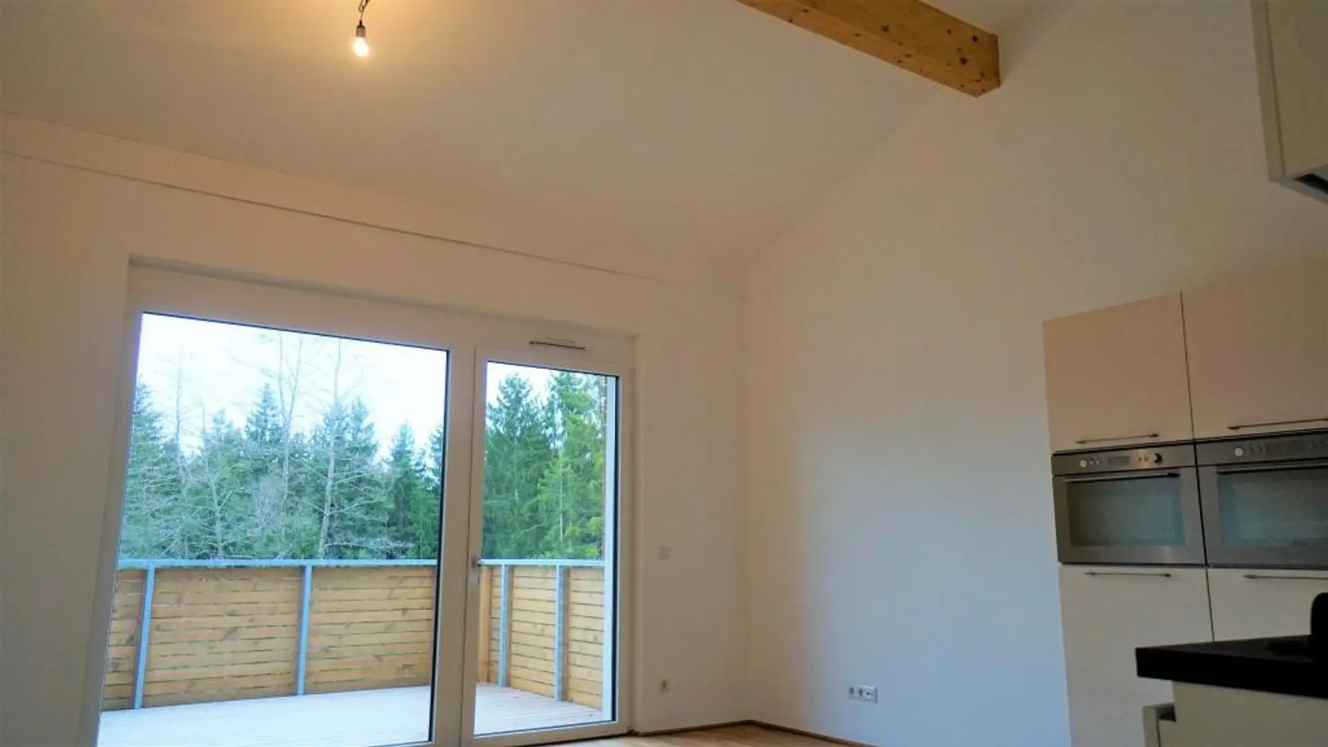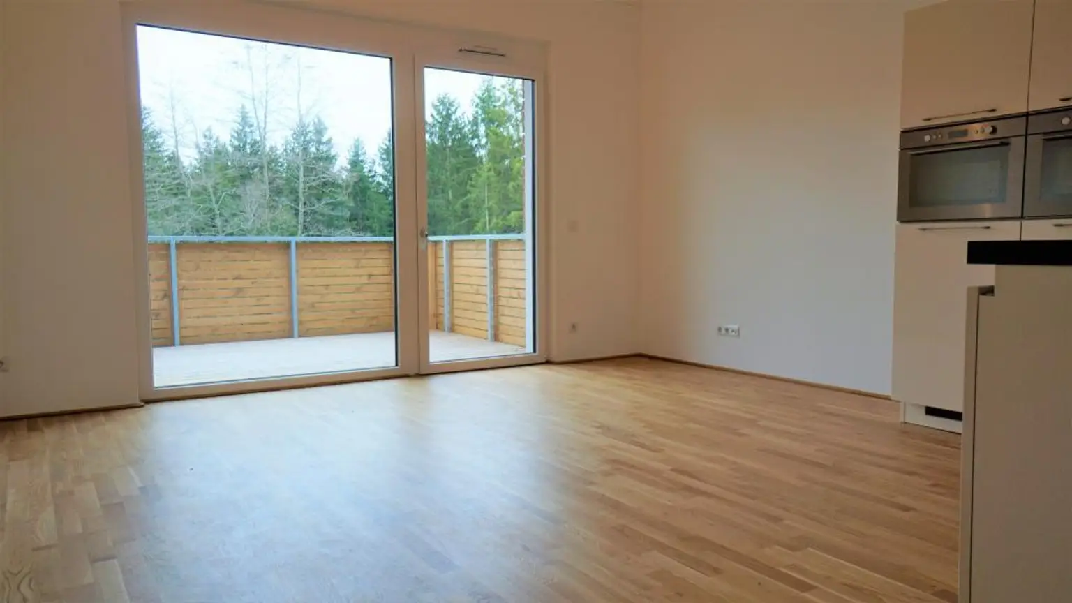 Von hier aus gelangt man auch auf den sonnigen Balkon mit 10m² und Blick in den Wald.