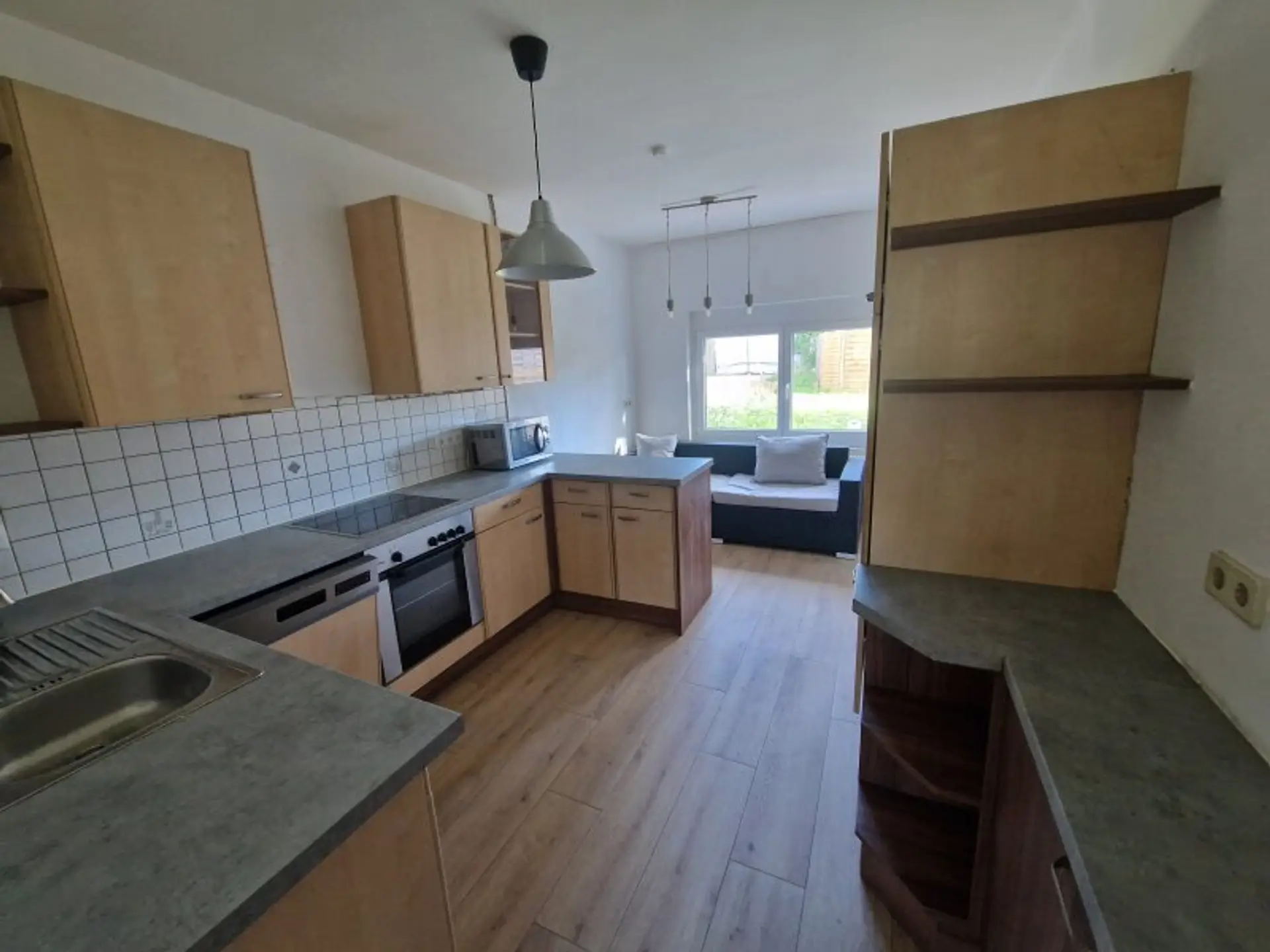 WOHNKÜCHE: ca. 14,70m², Küche komplett inkl. neuer Geschirrspüler, getrennter Kühl-/Gefrierschrank, Essgarnitur, 1 Fenster