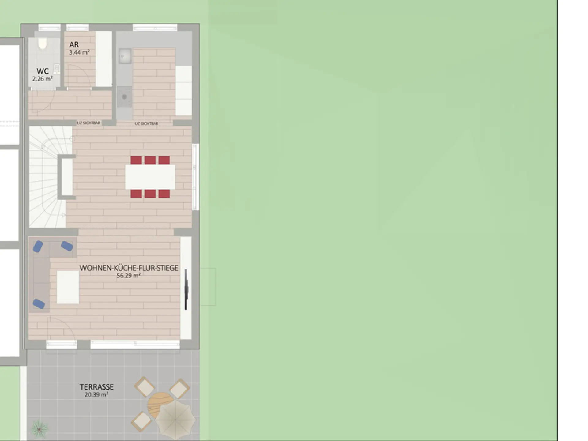 - Hochwertige Markenausstattung (Innenstiege vom Tischler, Feinsteinzeug-Fliesen, Holz-Alu-Fenster mit 3-fach Isolierverglasung, uvm.)