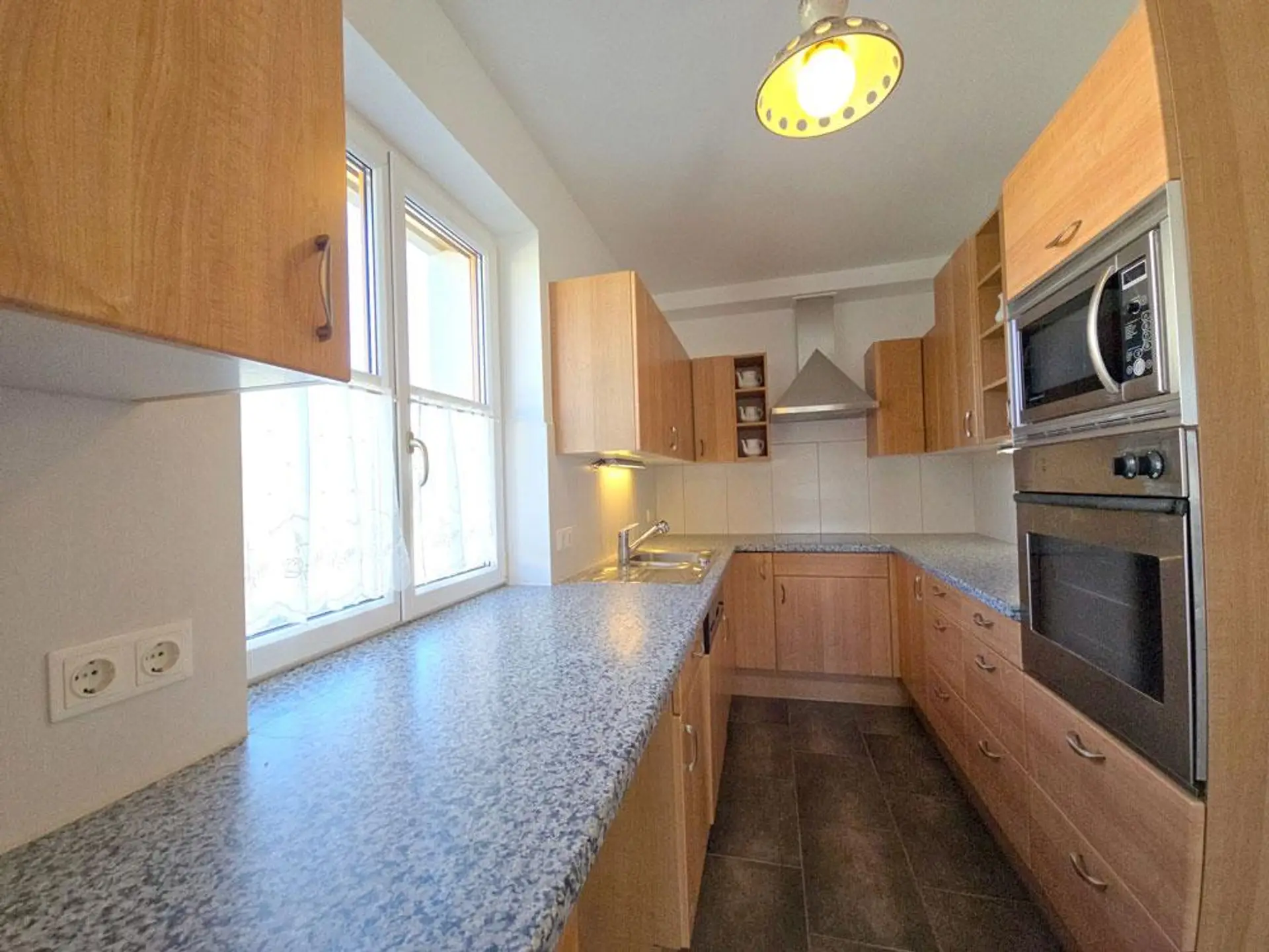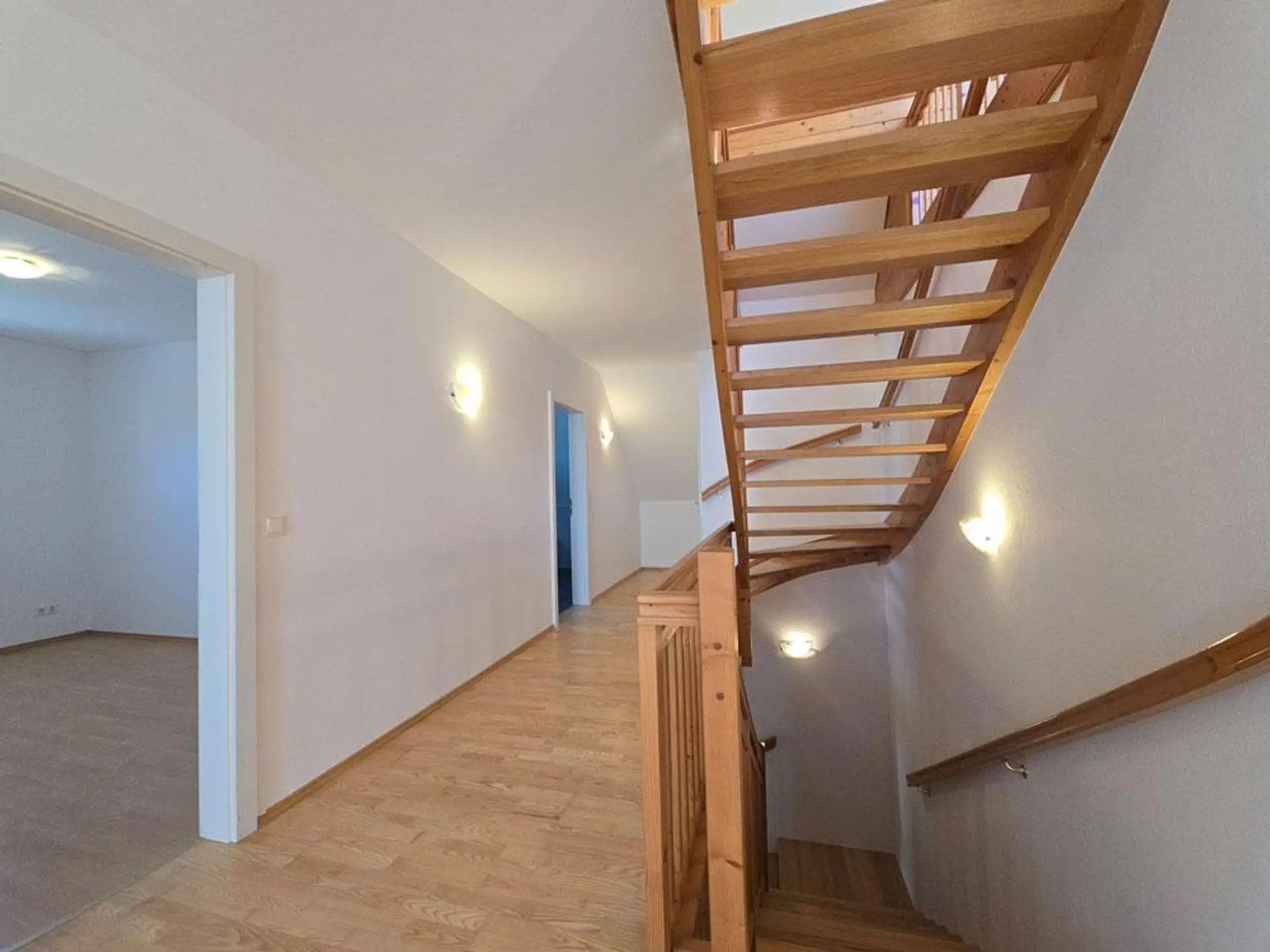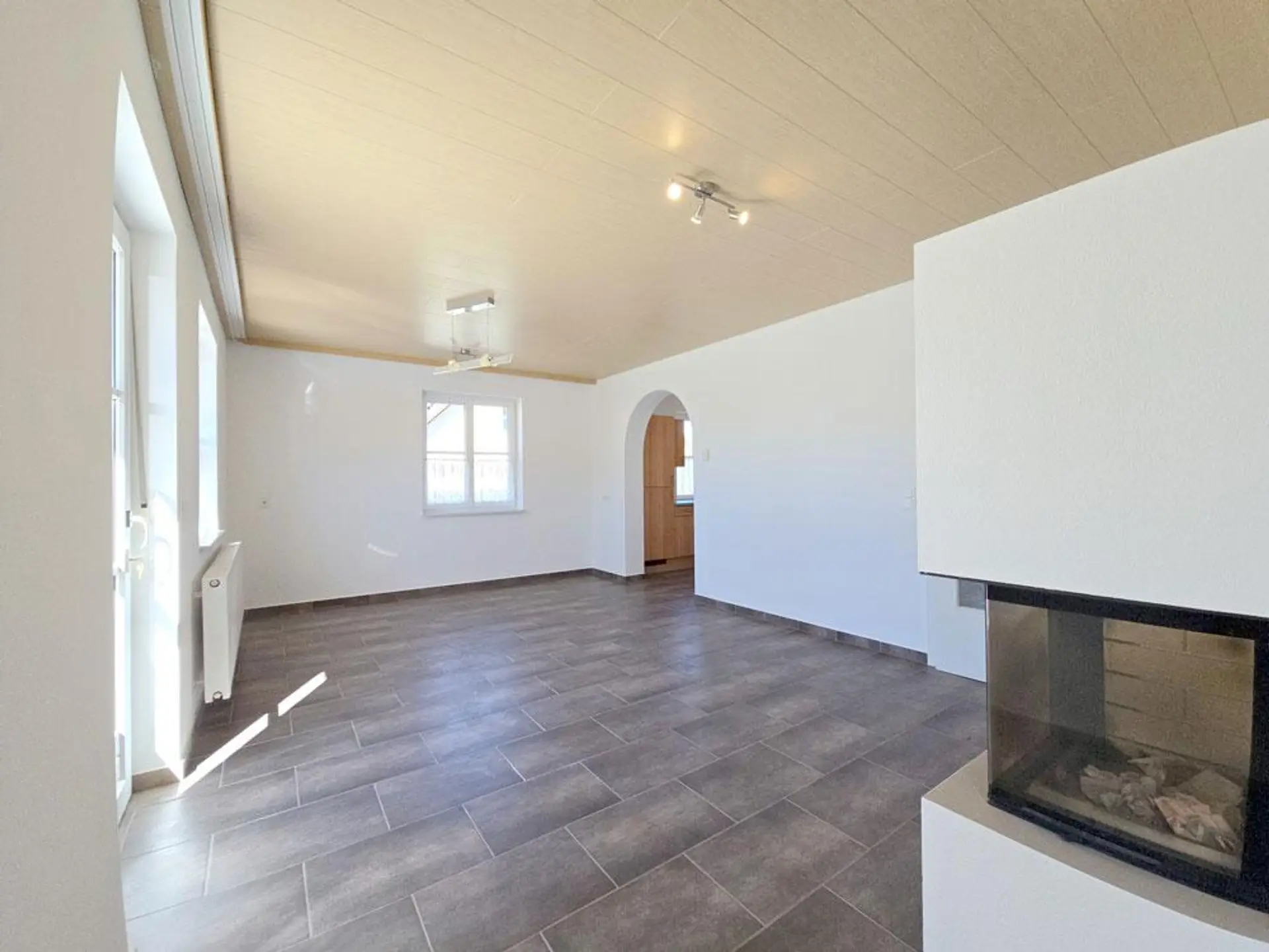 EG: Geräumiges Wohnzimmer mit Schwedenofen und Essplatz, offene, möblierte Küche (kann bei Bedarf geschlossen werden), 1 Zimmer, WC, Bad mit Dusche, Garderobe, Abstellraum, Vorzimmer