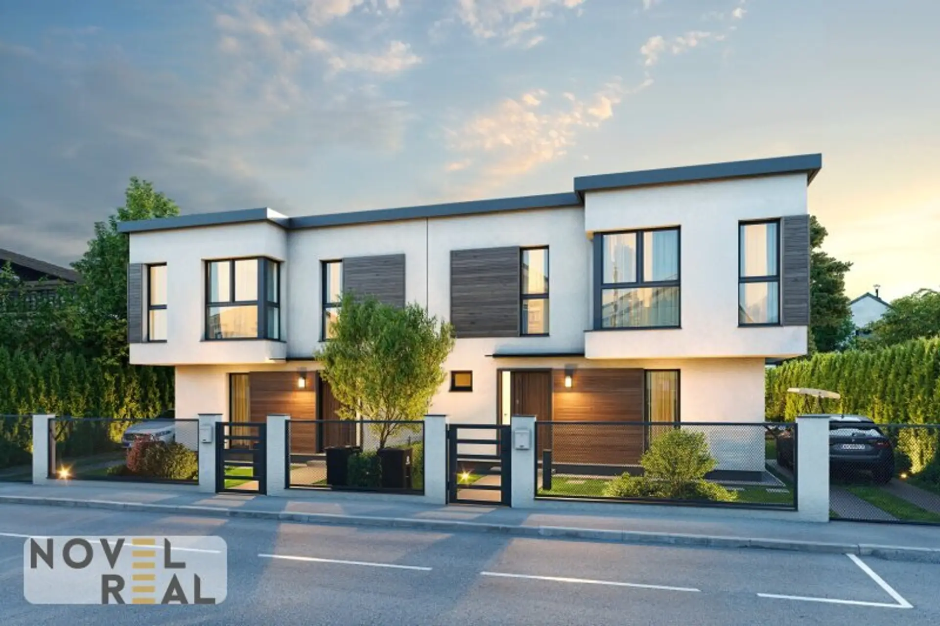 * Bebauung: modernes Doppelhaus