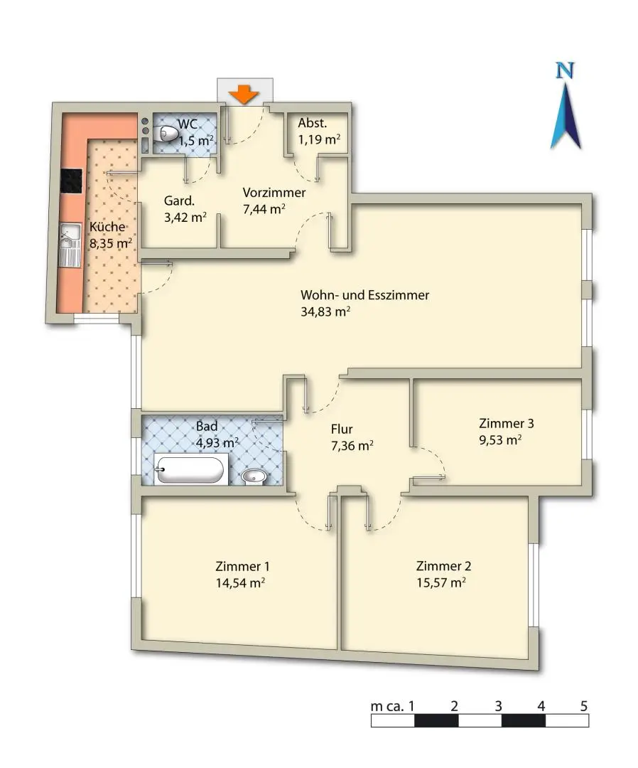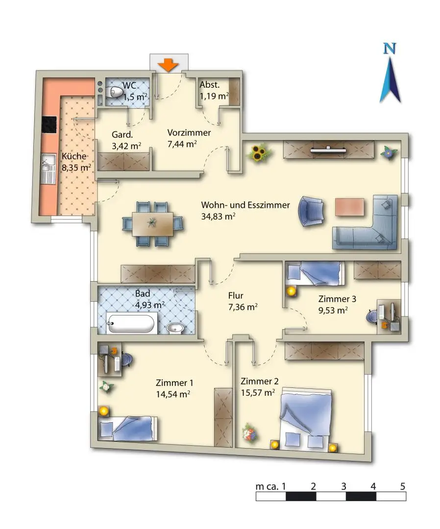 Die Wohnung teilt sich wie folgt auf: