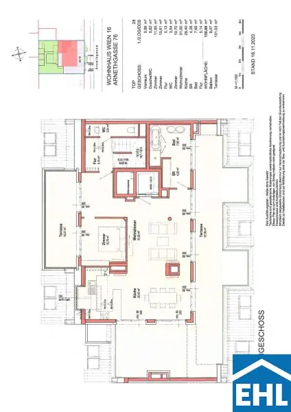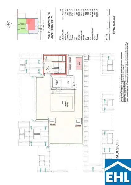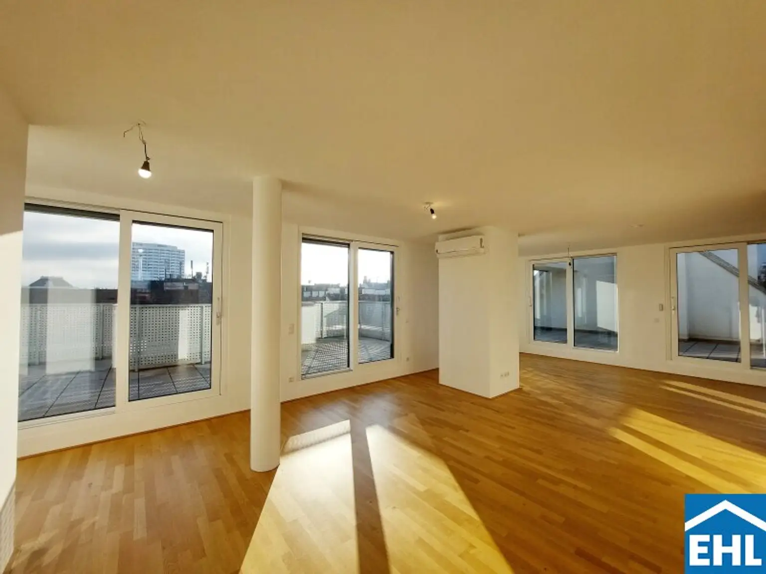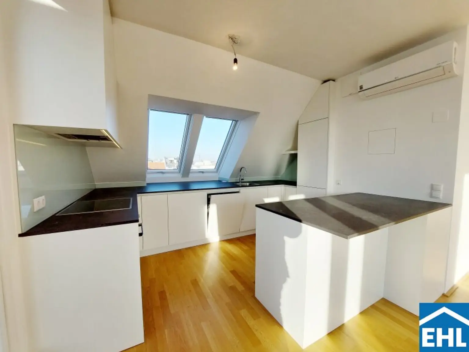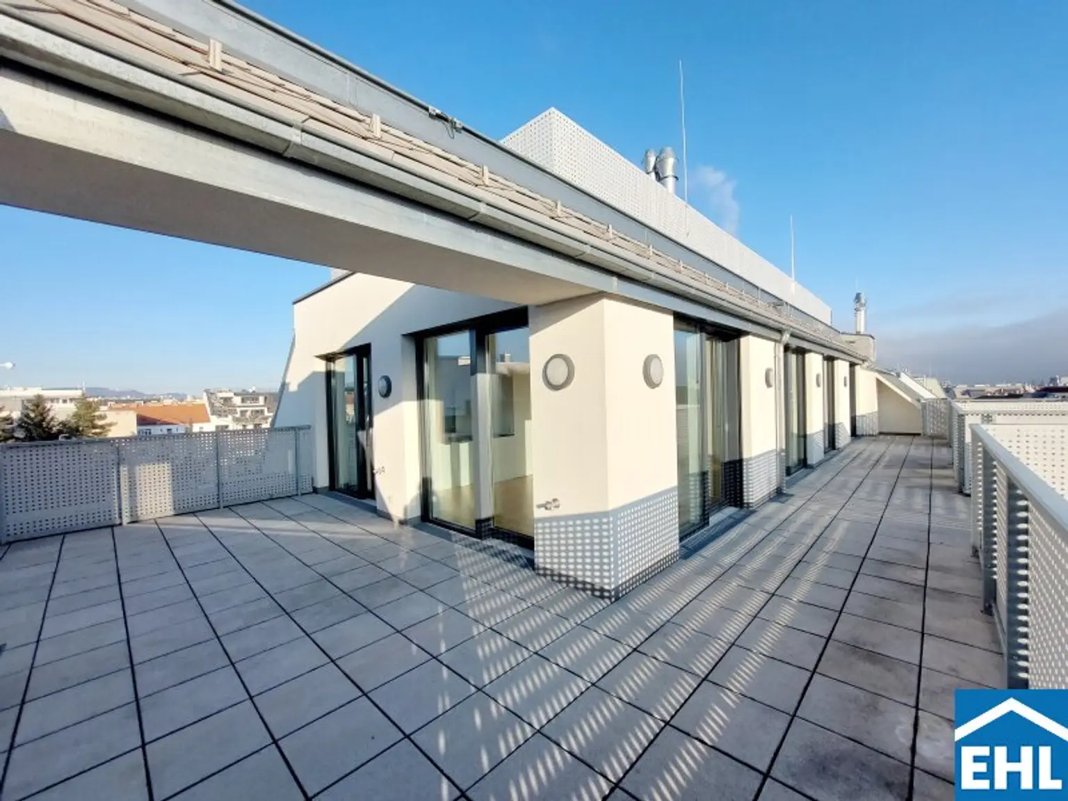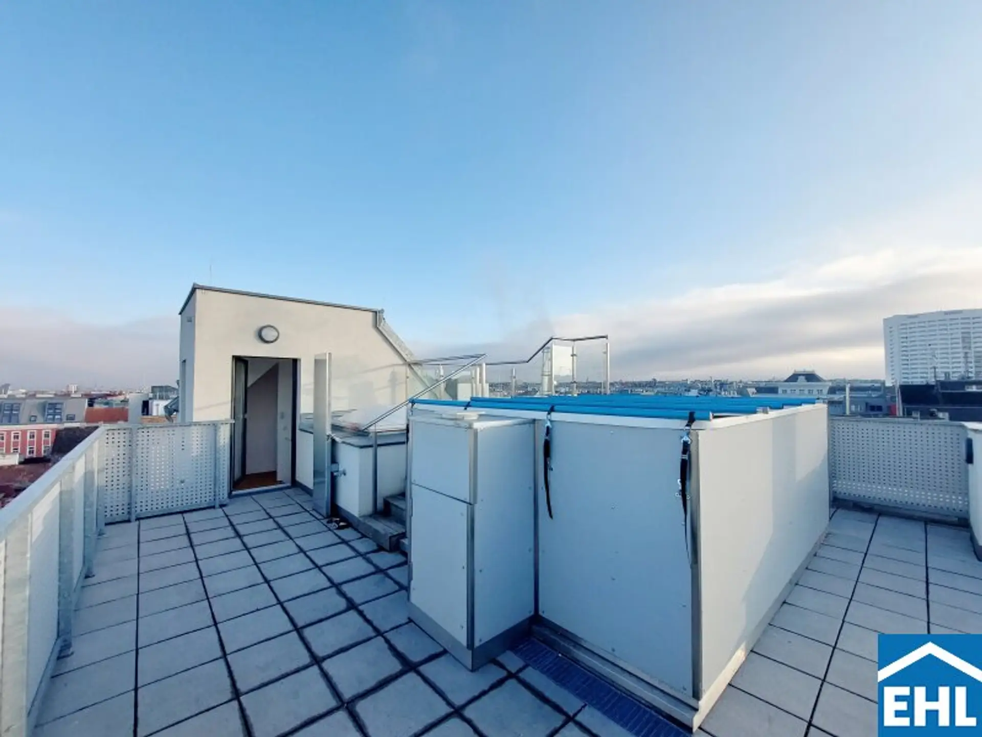 Die Wohnung selbst liegt im 1. und 2. Dachgeschoss und gliedert sich in eine großzügige Wohnküche, drei helle Schlafzimmer, zwei Badezimmer mit Badewanne und Duschen sowie einen Waschmaschinenanschluss und ein WC, eine separate Toilette, sowie einen Vorraum. Der nordseitige Balkon sowie Terrasse, die südseitige Terrasse und die Dachterrasse mit privatem Pool runden das Wohnerlebnis perfekt ab.