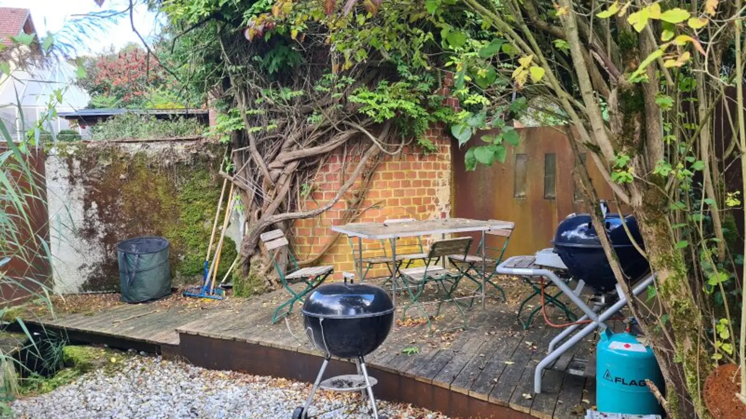 Der eigene, fasst uneinsehbare Gartenanteil befindet sich im Süden der Wohnung