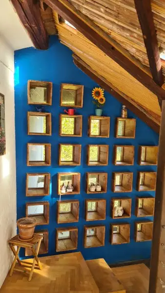 Die Ausstattung besteht aus sehr alten, aber auch aus neuen, modernen Materialien (altes Tramholz, Metall, Glas, etc).
