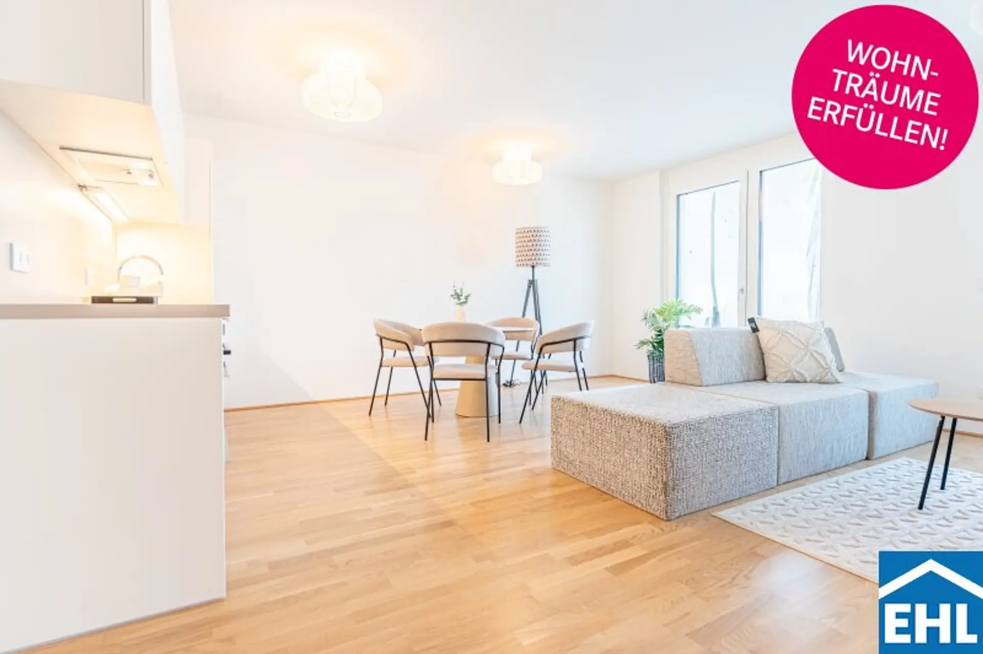 Die Wohnung selbst umfasst ein großzügiges Wohnzimmer mit offener Küche, drei getrennt begehbare Schlafzimmer, ein modernes Badezimmer mit Badewanne und Waschmaschinenanschluss, ein separates WC, sowie einen Vorraum. Die südwest-seitige Terrasse lädt zum gemütlichen Verweilen ein und rundet das Wohnerlebnis perfekt ab.