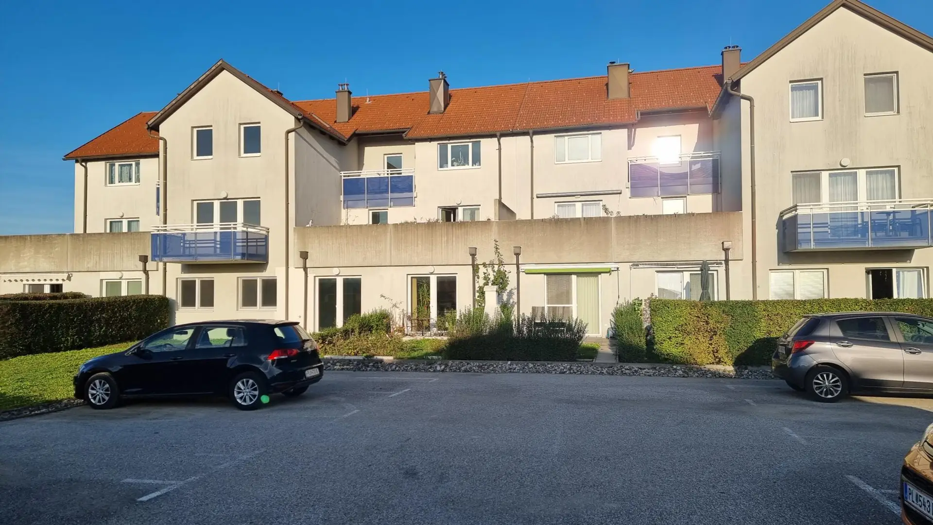 Das Badezimmer ist modern verfliest und mit einer bodenebenen Dusche ausgestattet. Das WC ist ebenfalls modern verfliest und separat angelegt. Alle Wohnbereiche sind mit schönen Parkettböden ausgestattet. Für den PKW ist mit einem praktischen Autoabstellplatz vorgesorgt.