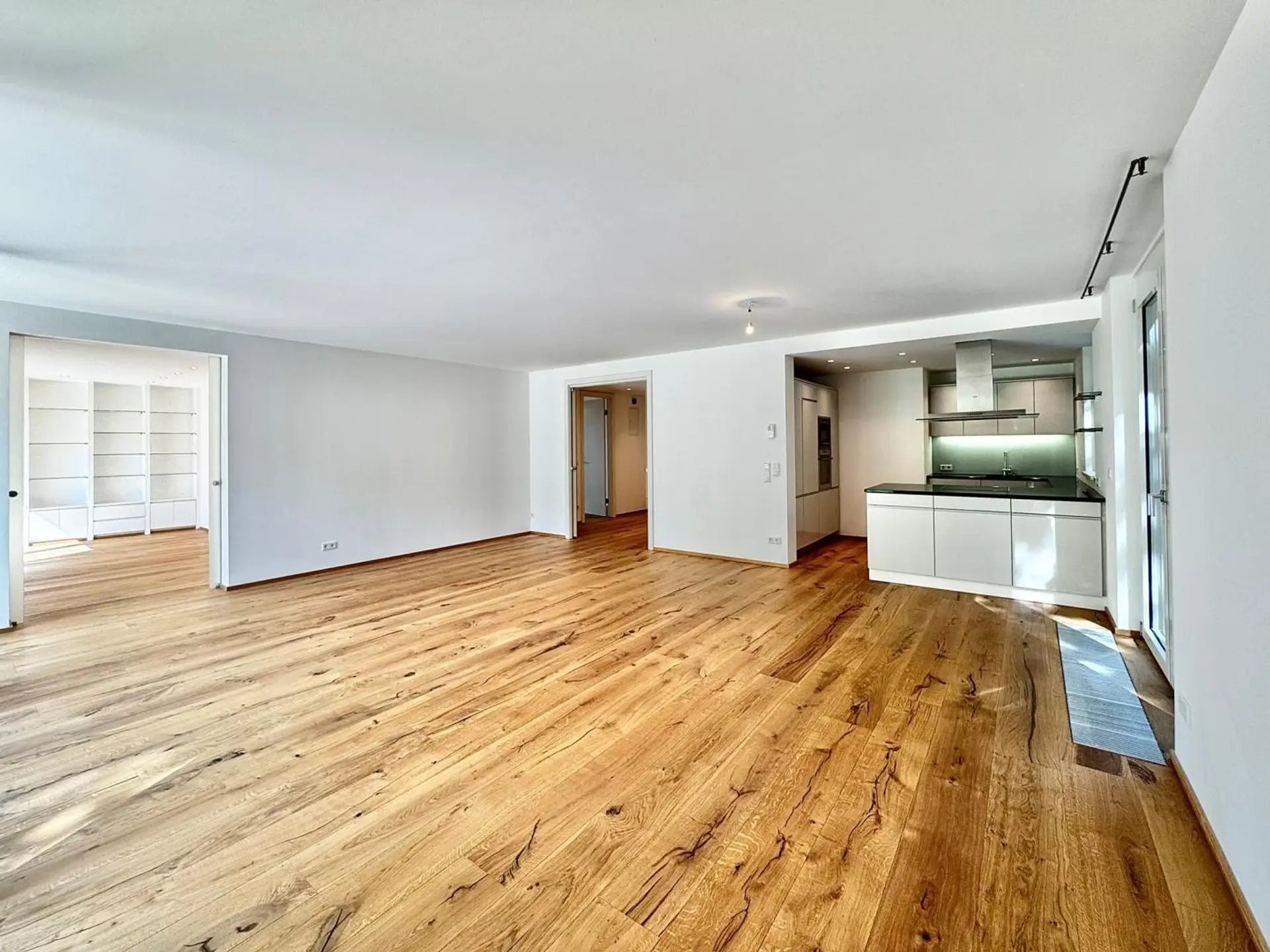 Wir betreten die Wohnung in ein großes, annähernd quadratisch geschnittenes Vorzimmer. Hier finden Sie nicht nur reichlich Platz für Ihre Garderobe, auch Ihre Gäste können Sie hier in Empfang nehmen. Durch eine breite Schiebetür gelangen wir in den ausladenden Wohn- Essbereich mit angeschlossener offener Küche. Aufgrund der vielen Glaselemente erscheint der Raum wunderbar hell und freundlich. In der gesamten Wohnung wurde ein neuer, sehr hochwertiger, Parkettboden verlegt, der den besonderen Anspruch dieser Immobilie unterstreicht.