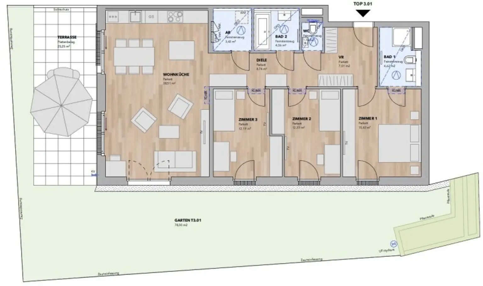 NEU - 4-Zimmer Gartenwohnung am sonnigen Südhang - Top 3.01