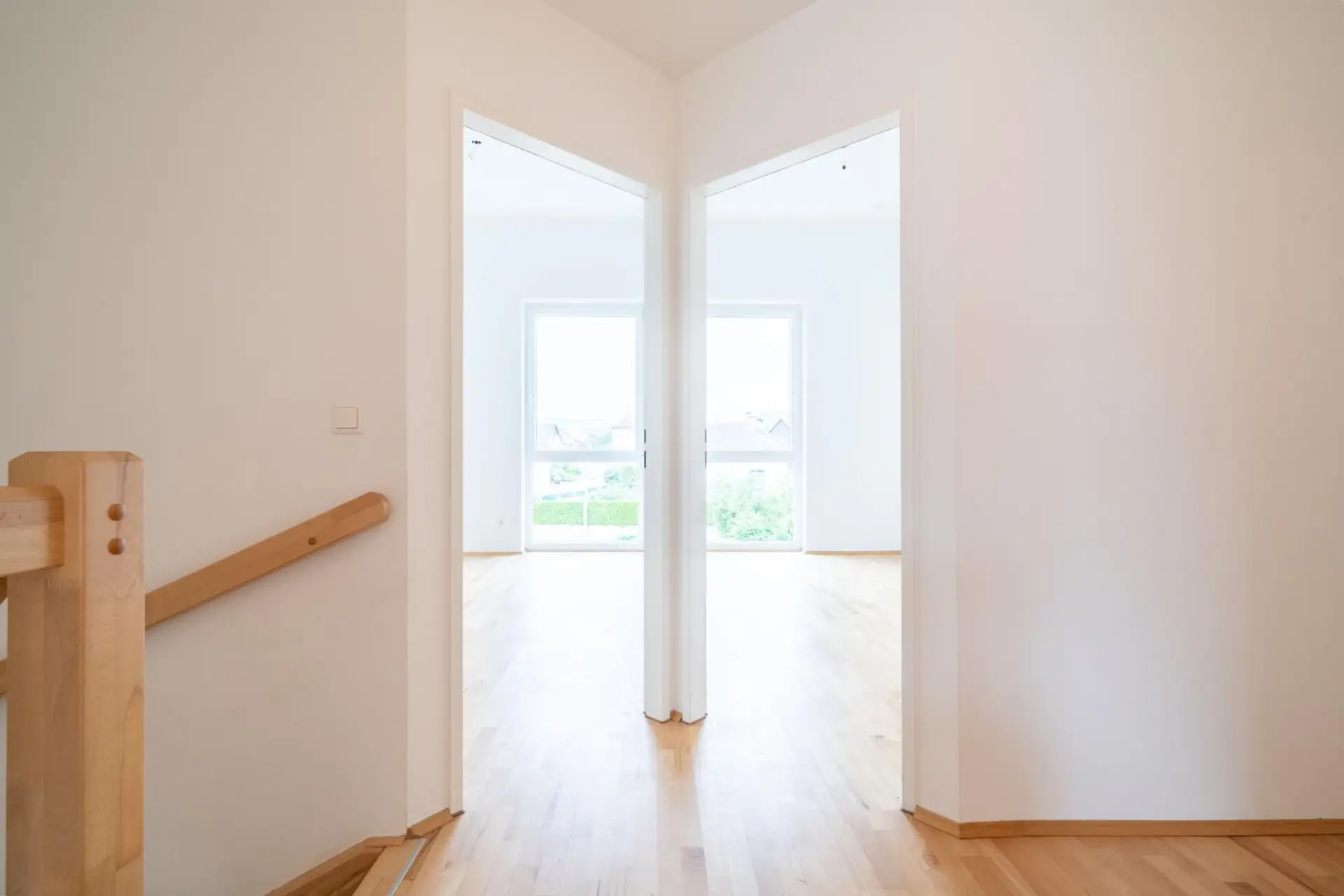 Im 1. Geschoß befinden sich ein Vorzimmer, ein separates WC, ein Abstellraum und eine geräumige Wohn-/Essküche, von der man direkt auf die herrliche Terrasse gelangen kann.