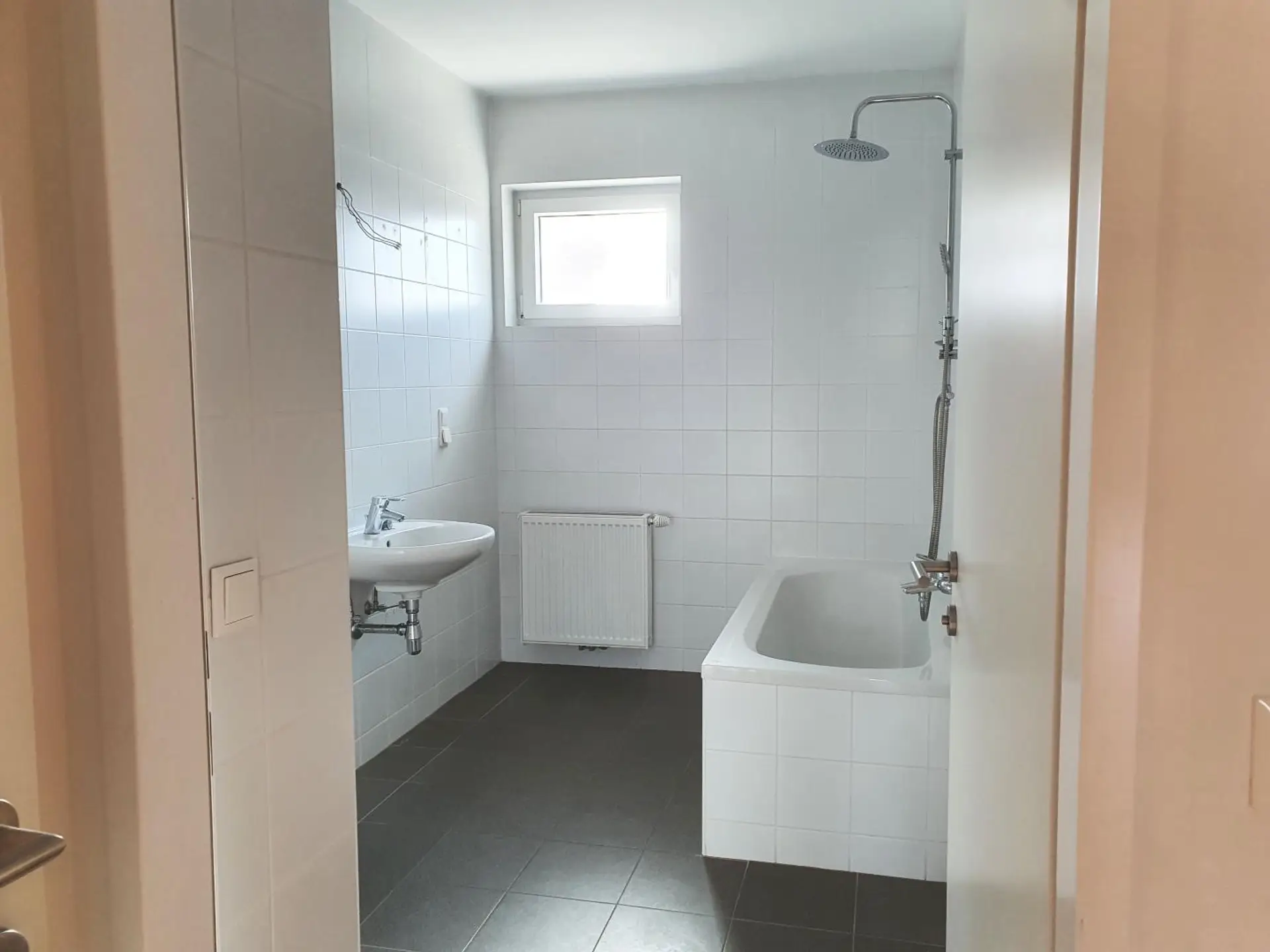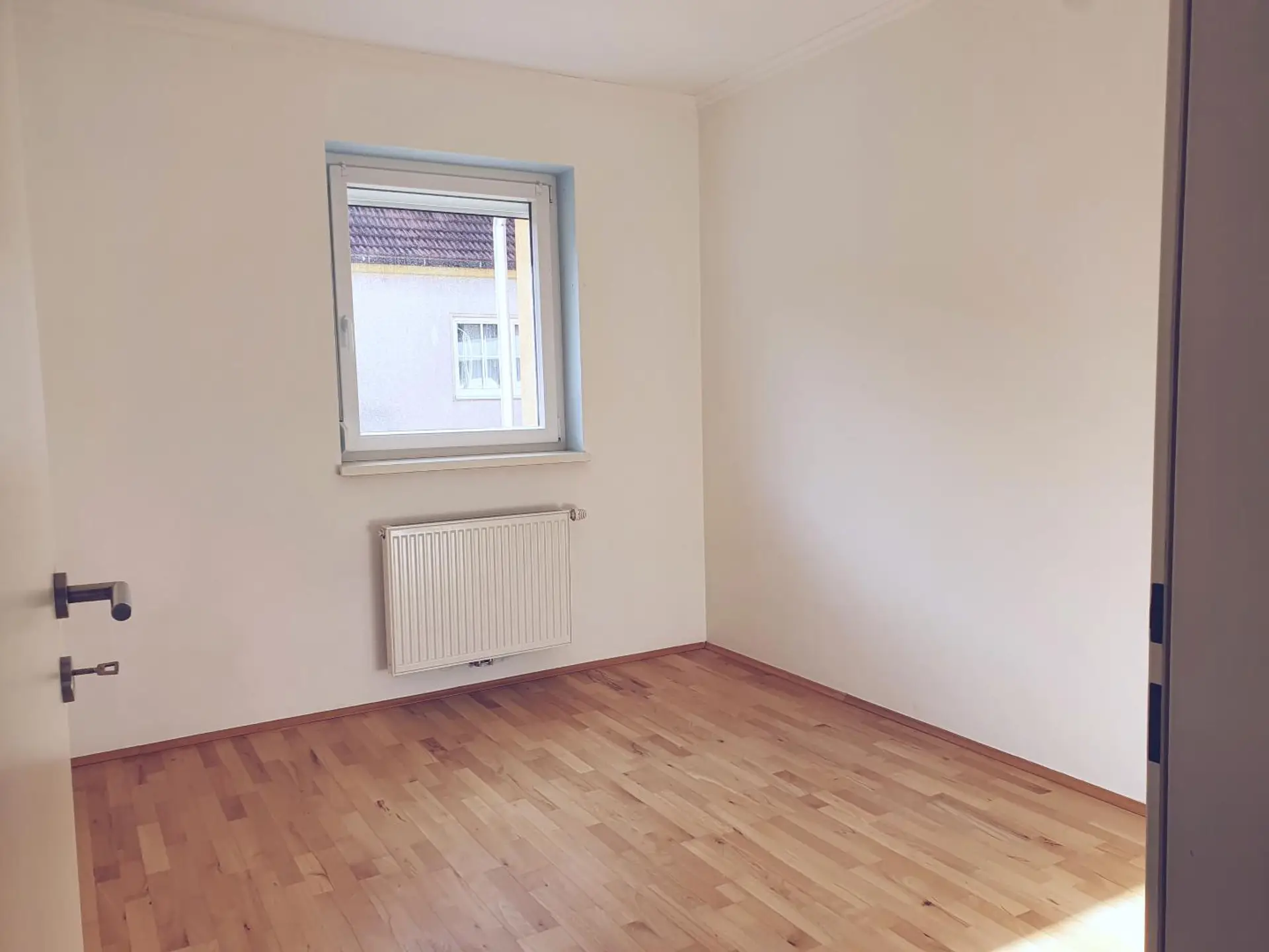 Hier befinden sich 3 Schlafzimmer, ein Vorraum, ein Abstellraum und ein Badezimmer mit Badewanne (Fenster).
