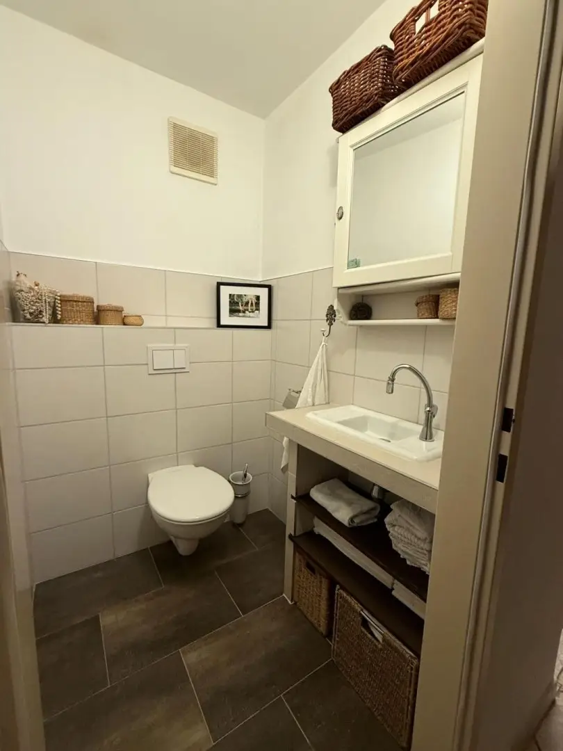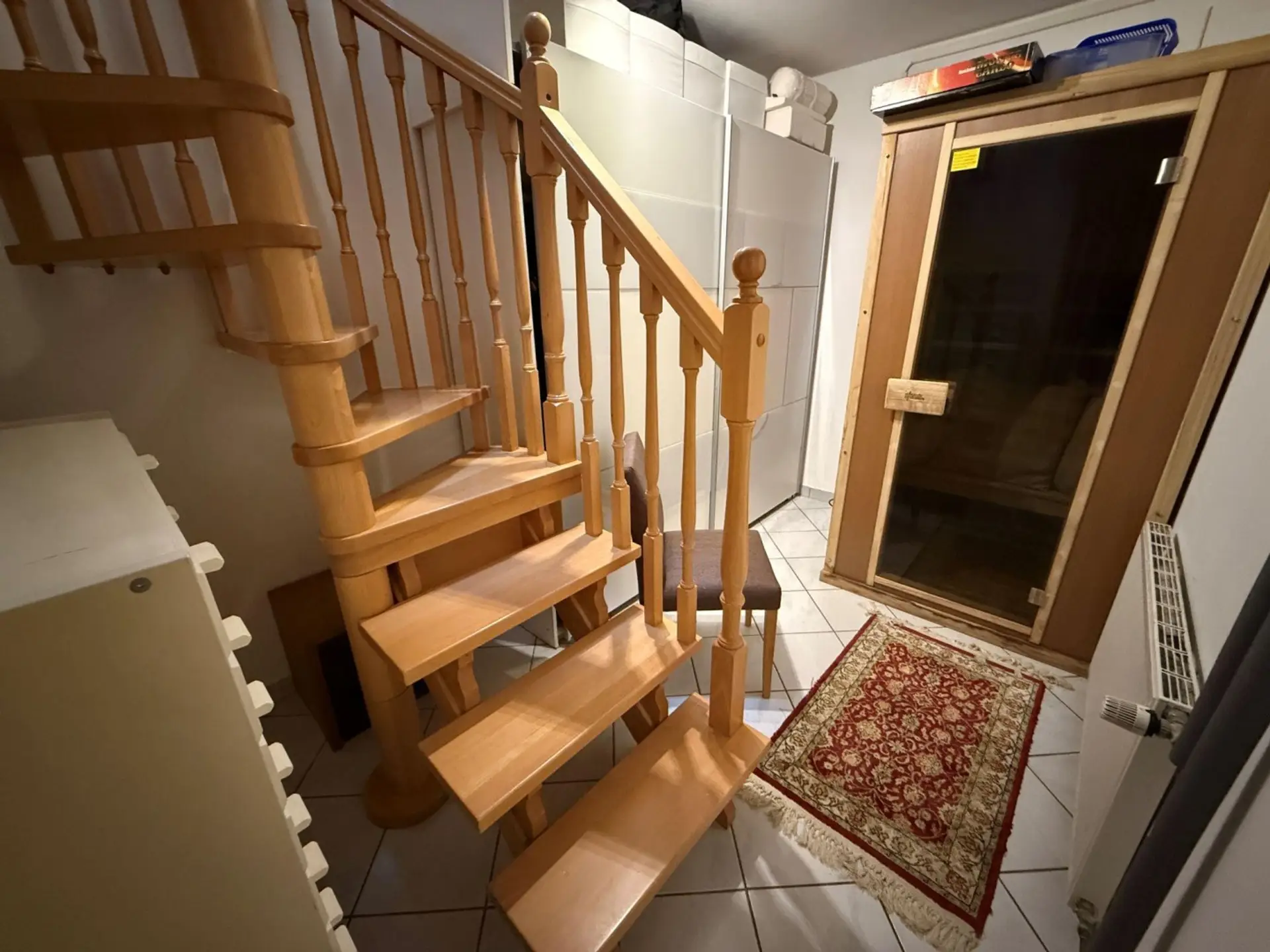 UG: Über eine im Windfang befindliche Wendeltreppe erreichen Sie das Untergeschoss. Dort befinden sich eine Infrarot-Kabine, ein großzügiger Lagerraum sowie der Technikraum. Im UG haben Sie den Zugang zu den allgemeinen Teilen des Kellergeschosses. Hier ist ein weiteres zugehöriges Kellerabteil, sowie der Zugang zur Tiefgarage bzw. ein separater Zugang (Außentreppe).