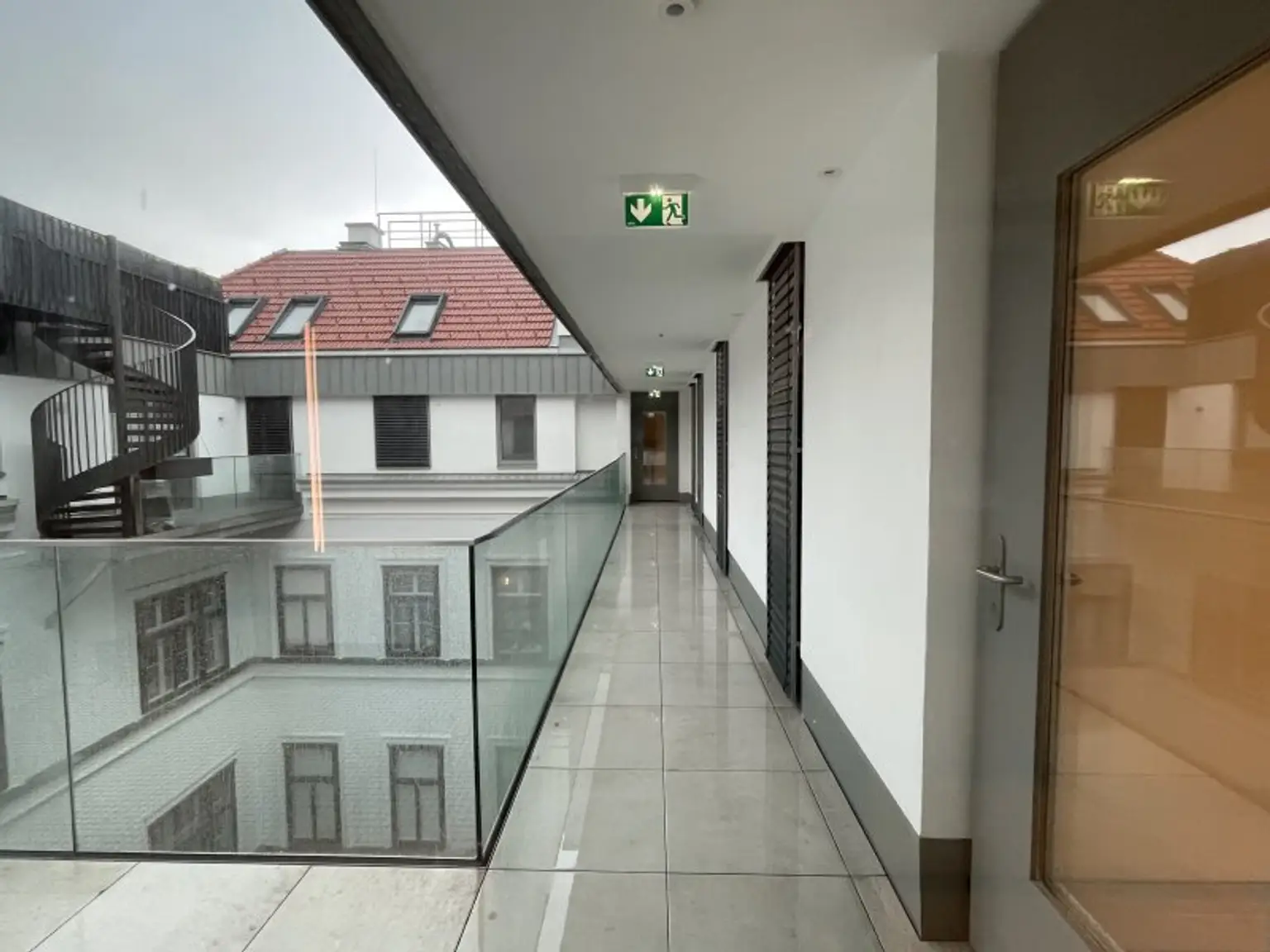 Die architektonische Raffinesse dieser Wohnung erstreckt sich auch im oberen Bereich, wo ein Studio/Galerie, mit eigenem Zugang von Außen, für zusätzlichen Raum sorgt.