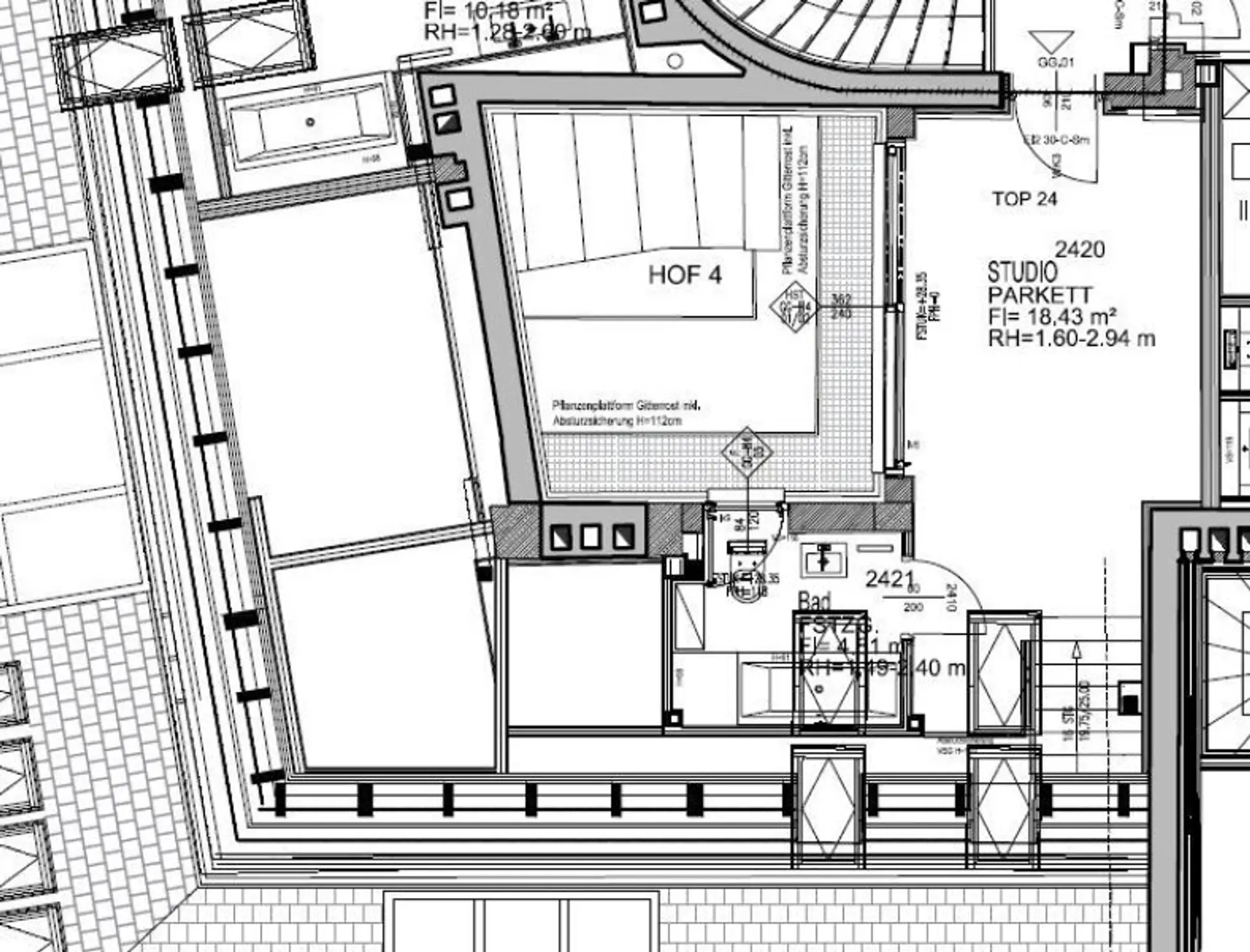 * 1 offenes Studio im oberen Stock