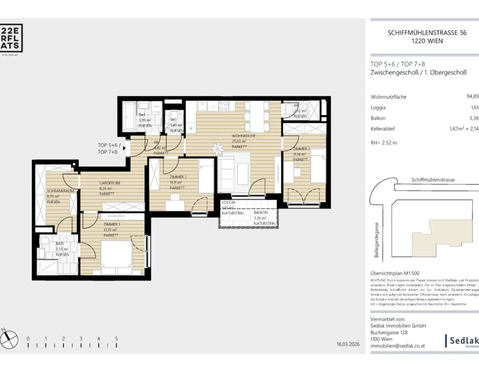 VERKAUFSSTART ! Schiffmühlenstraße 56, 1220 Wien Top 5+6 Großzügige 4-Zimmer-Neubauwohnung mit ca. 94 m² Wohnfläche sowie Loggia (ca. 1,61 m²) und Balkon (ca. 3,36 m²) . In der Schiffmühlenstraße 56 entsteh…