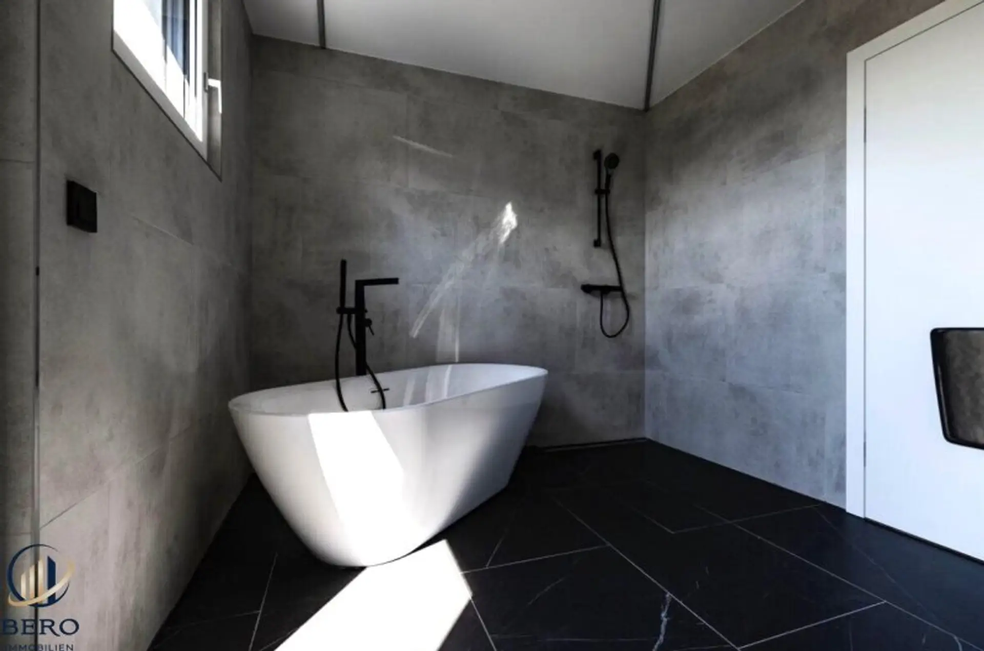 * edle großformatige Fliesen in den Nassbereichen