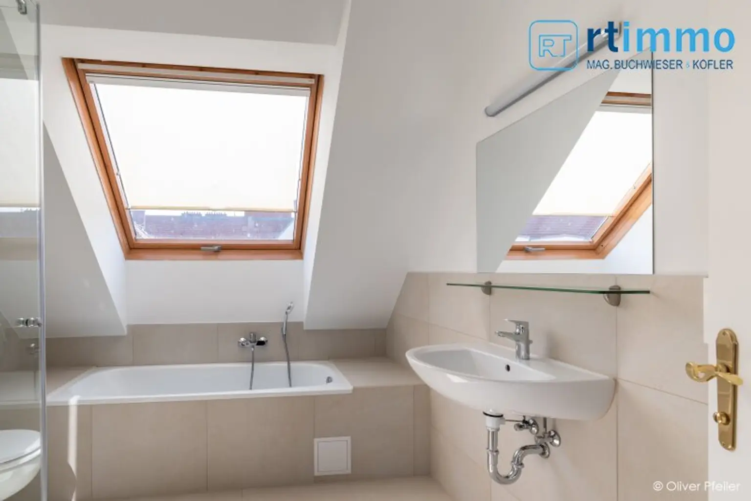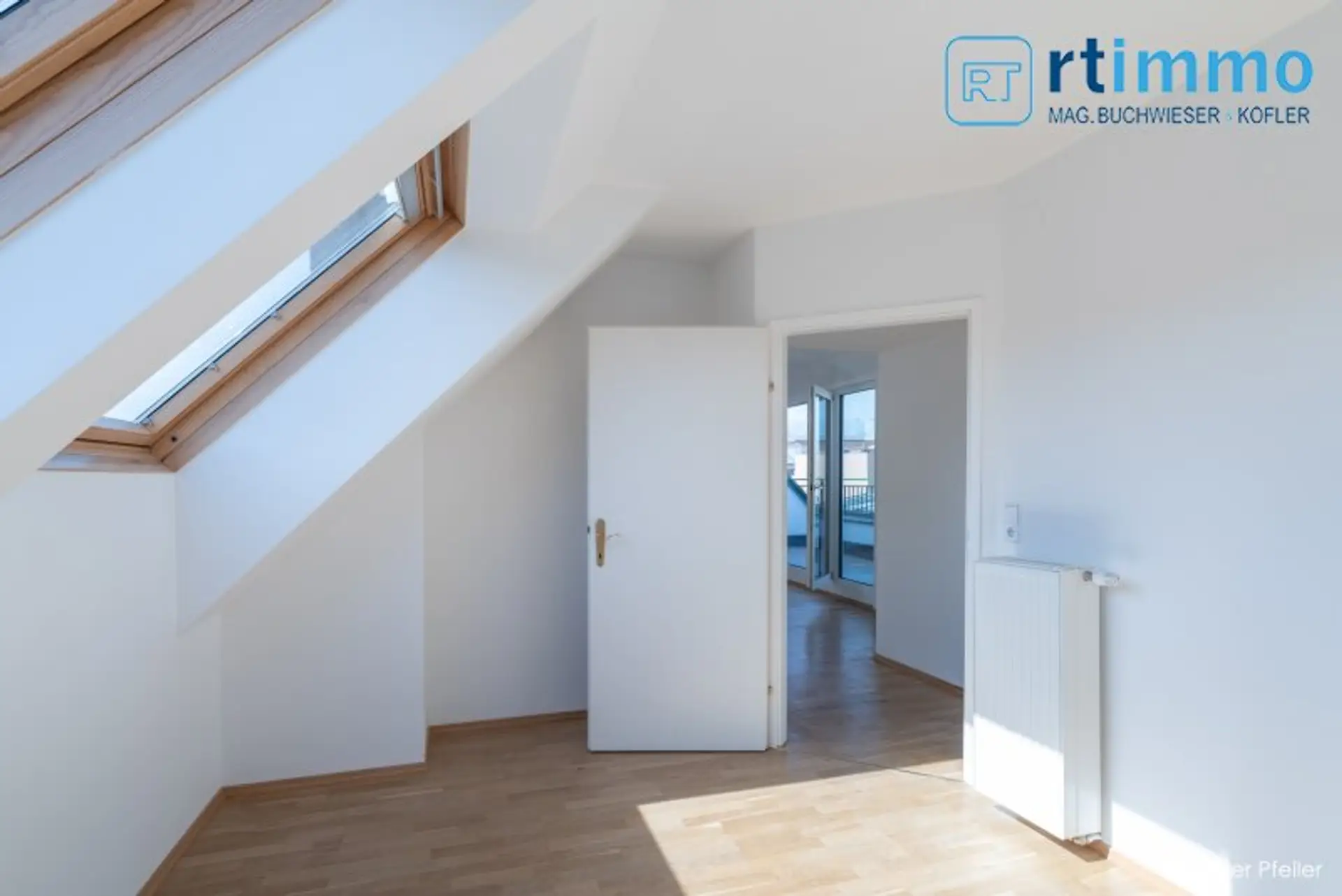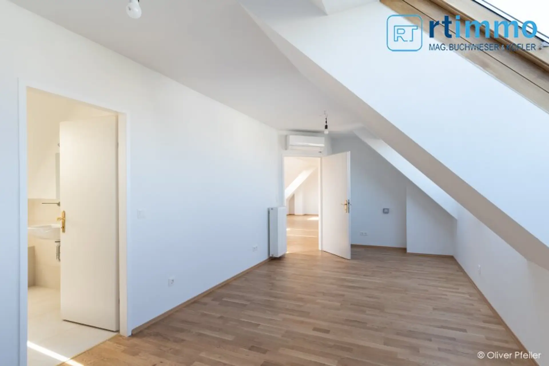 Die Wohnung wird beidseitig belichtet und hat Schrägen mit hohem Kniestock. Die Glastüren zur Terrasse im Wohnzimmer können zu Gänze geöffnet werden (faltbar), sodaß im Sommer die Terrasse als erweitertes Wohnzimmer genutzt werden kann. Jedes der 3 Schlafzimmer verfügt über ein eigenes Bad, davon 2 Wannenbäder mit Dusche und WC, eines nur mit Dusche. Sämtliche Dachschrägenfenster verfügen über innenliegenden Sonnenschutz und die Terrassentüren über Jalousien.