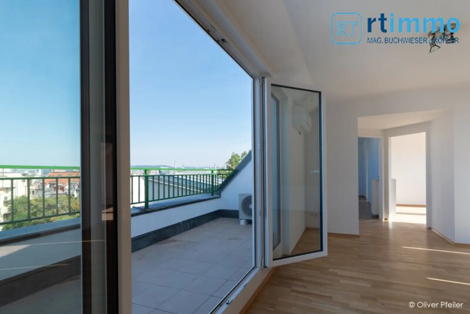 Sehr helle, ruhige Terrassenwohnung im Dachgeschoß eines gepflegten Neubaus nächst Philadelphiabrücke mit insgesamt vier Zimmer, ca 107m² Wohnnutzfläche sowie 10,83m² Westterrasse.