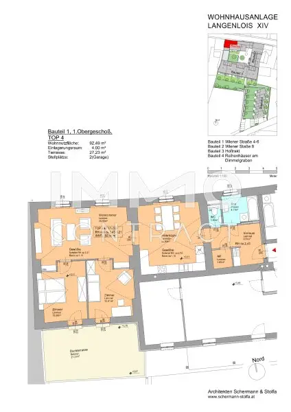Diese ca. 92 m" Wohnung befindet sich in zentraler Lage von Langenlois und verfügt über 2 Schlafzimmer (mit Ausgang auf die ca. 27 m² große Terrasse), einem Wohnzimmer, einer Küche (nicht möbliert), einem Bad mit Wanne, einer Toilette, einem Vorzimmer und einem Abstellraum. weiters steht Ihnen ein Einlagerungsraum sowie ein Garagenplatz zur Verfügung.