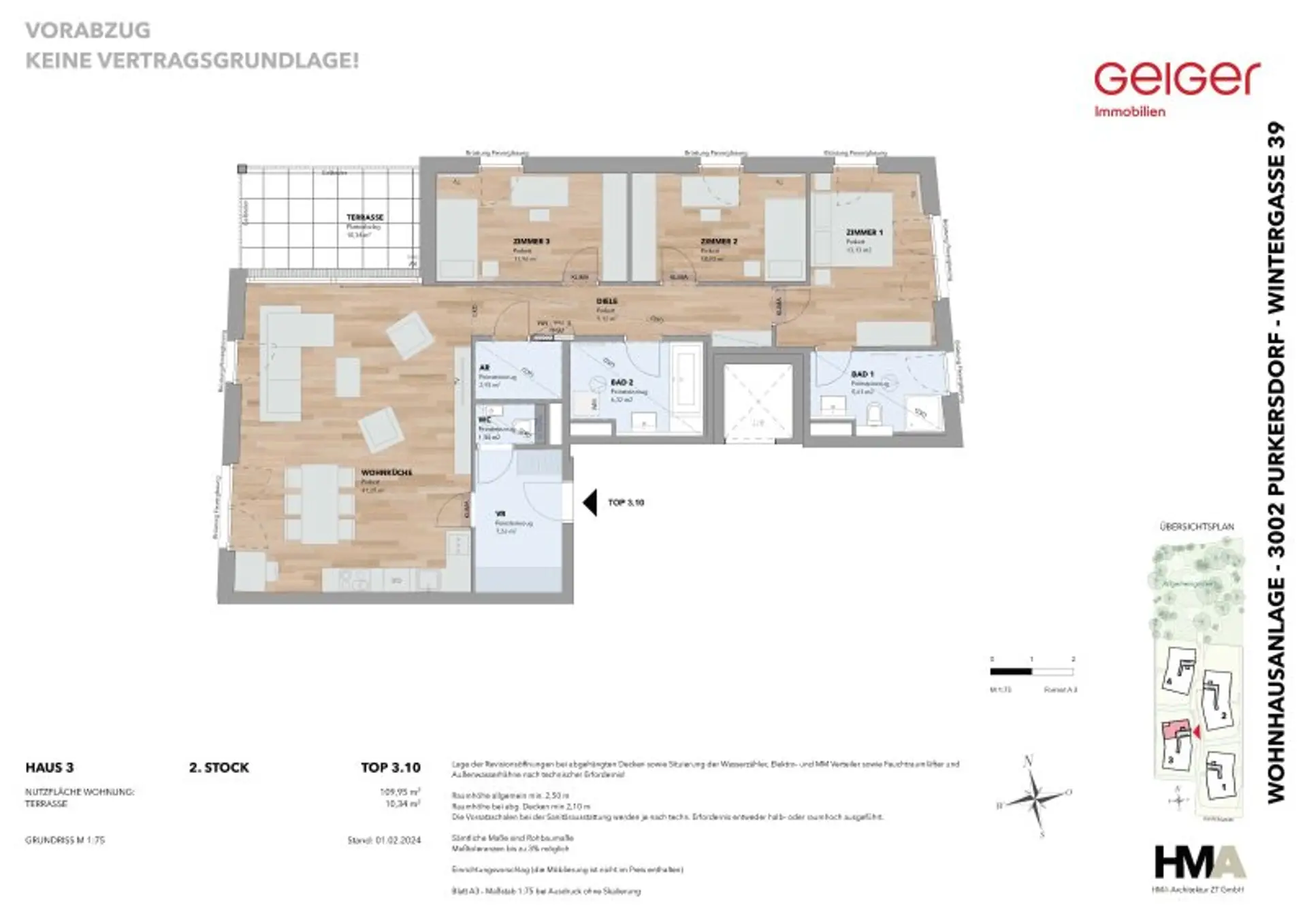 In der zentrumsnahen Wintergasse 39 im beliebten Purkersdorf, errichten wir eine moderne Wohnhausanlage. Diese fügt sich harmonisch in den Hang ein, besteht aus 4 Wohnhäusern mit insgesamt 48 Wohnungen (2-, 3-, 4- und 5-Zimmer Wohnungen), 74 KFZ-Tiefgaragenplätzen, sowie 8 Stellplätzen für Motorräder.