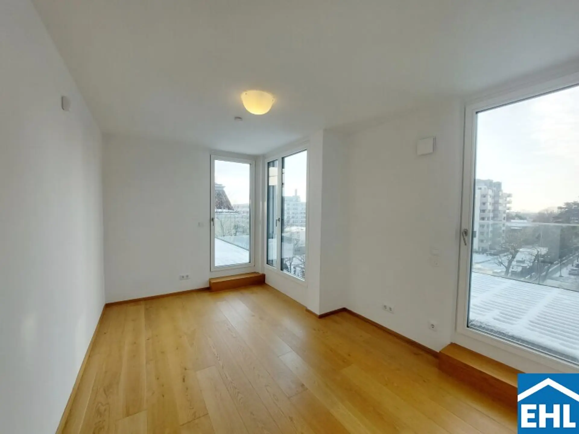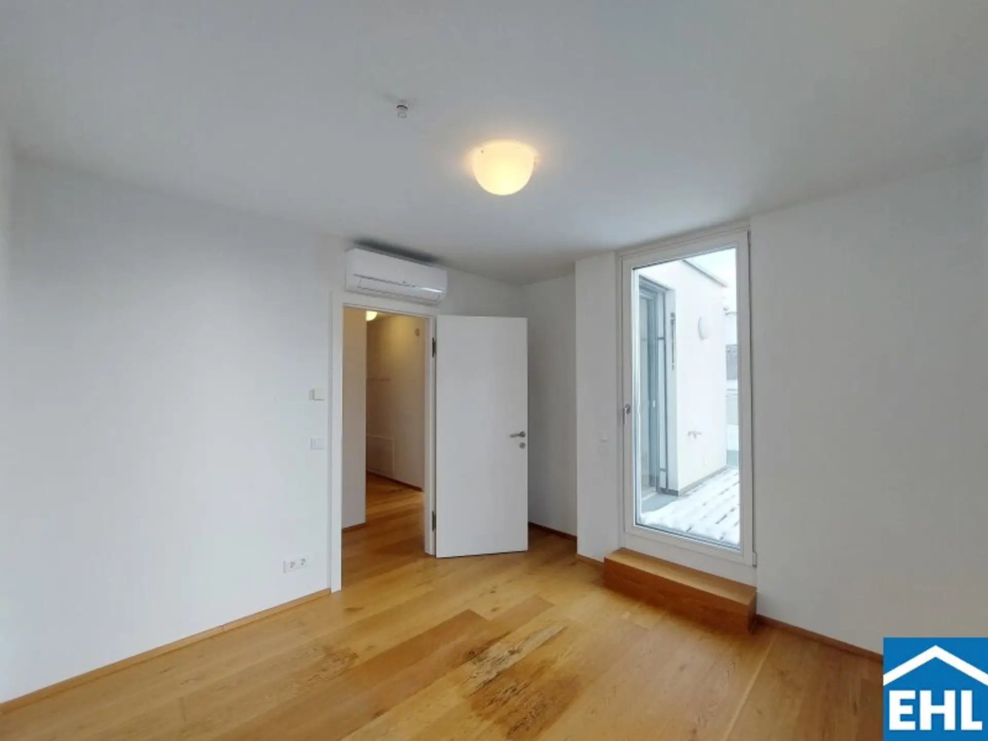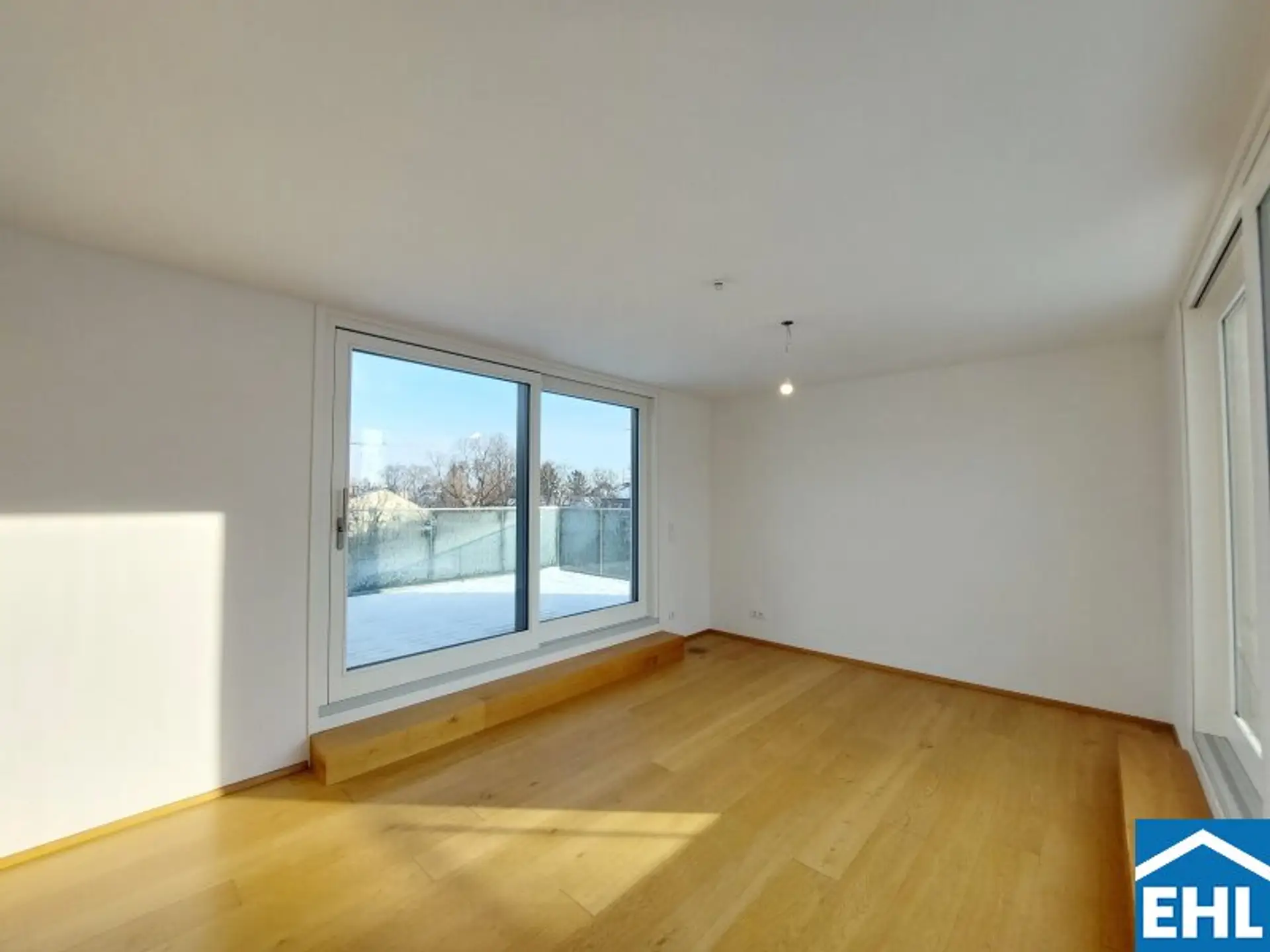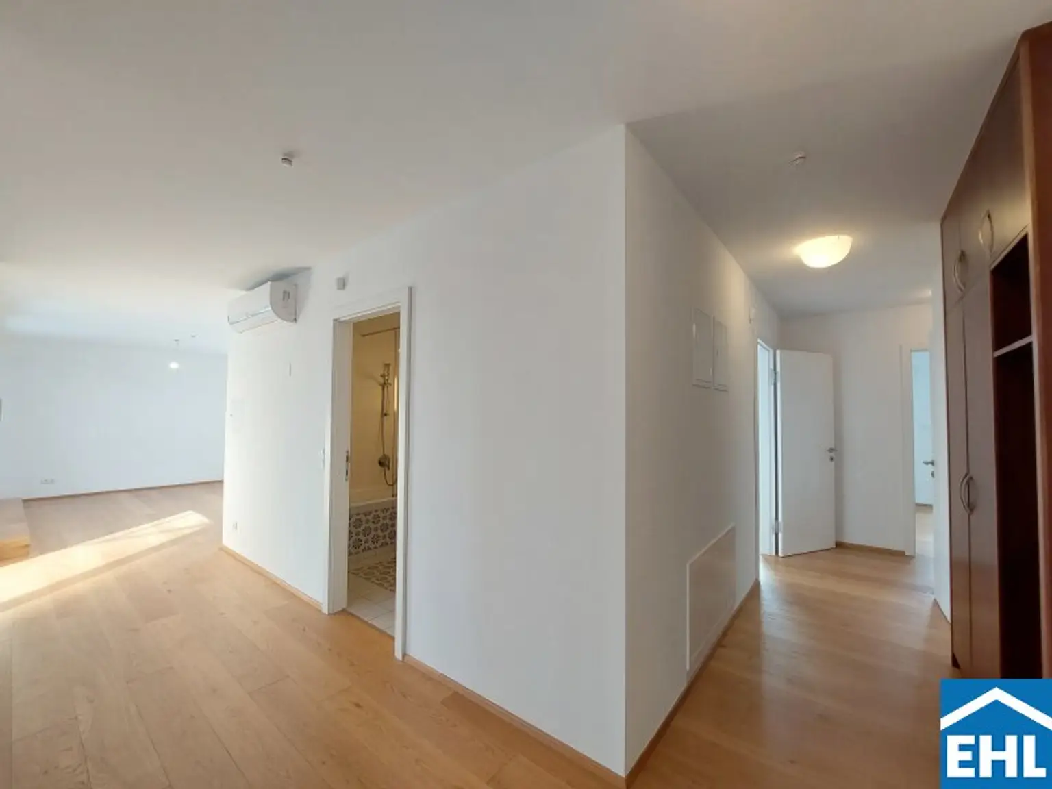 Die großzügige Wohnung selbst befindet sich im 1. Dachgeschoss, überzeugt durch ihre lichtdurchfluteten Räume, verfügt über eine großzügige, helle Wohnküche mit vollausgestatteter Einbauküche, drei ruhige separat begehbare Schlafzimmer, ein Badezimmer mit Dusche und Waschmaschinenanschluss und Doppelwaschbecken, ein separates WC sowie einen Vorraum. In jedem Zimmer befindet sich ein Klimagerät. Die Terrassen mit zusammen 49 m² runden das Wohnerlebnis perfekt ab.