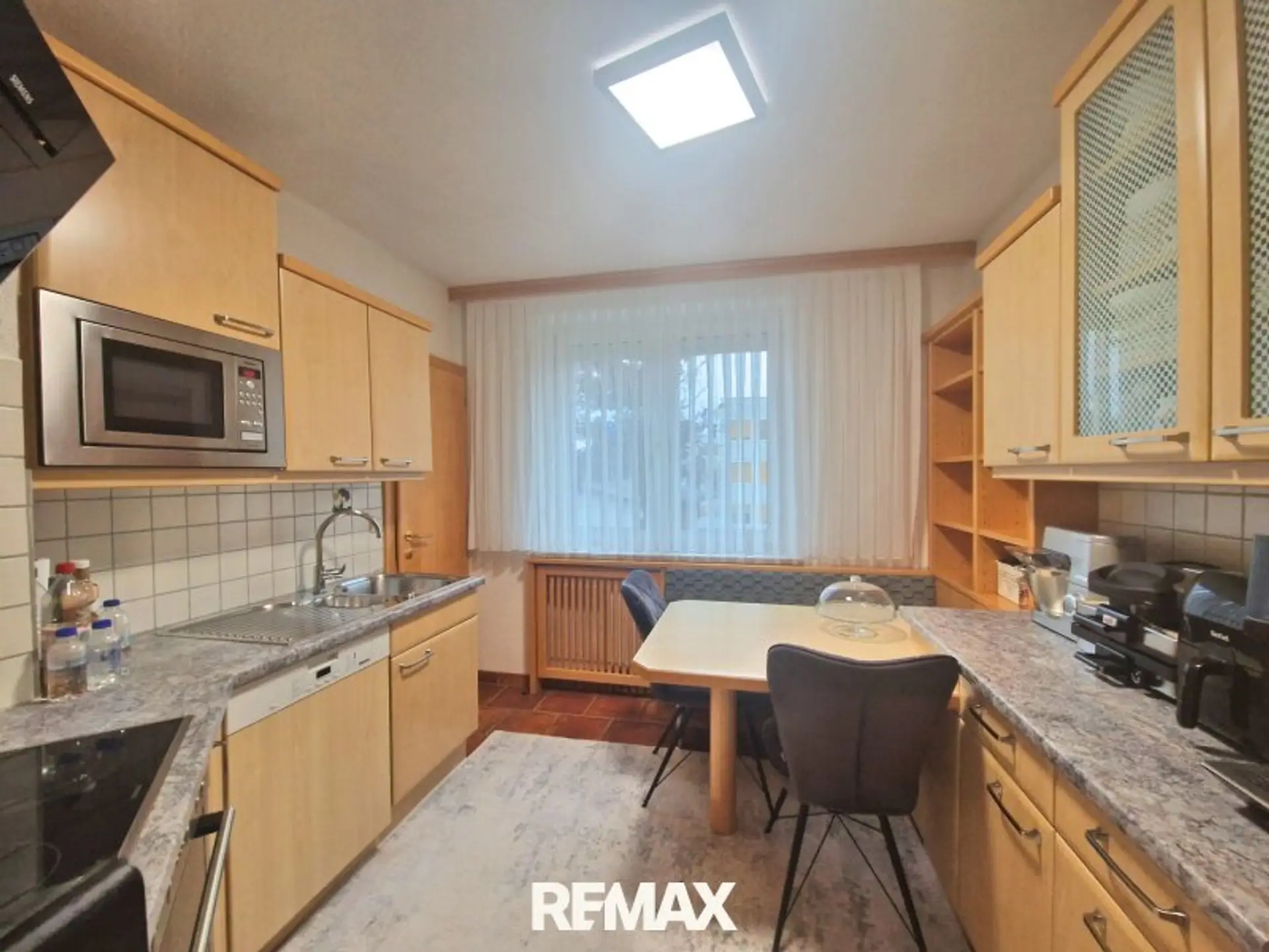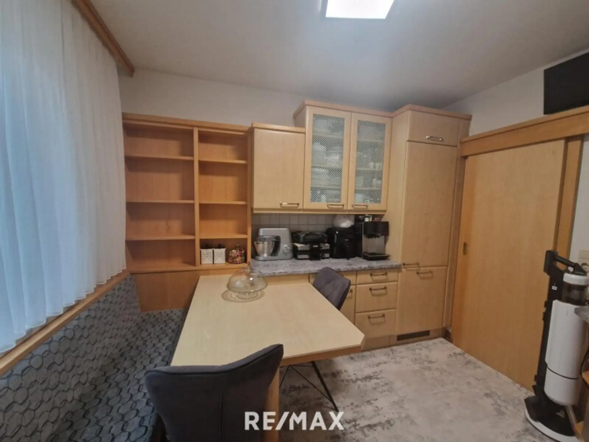 Eine gemütliche Küche mit Platz zum gemeinsamen Essen und einer praktischen Speis!