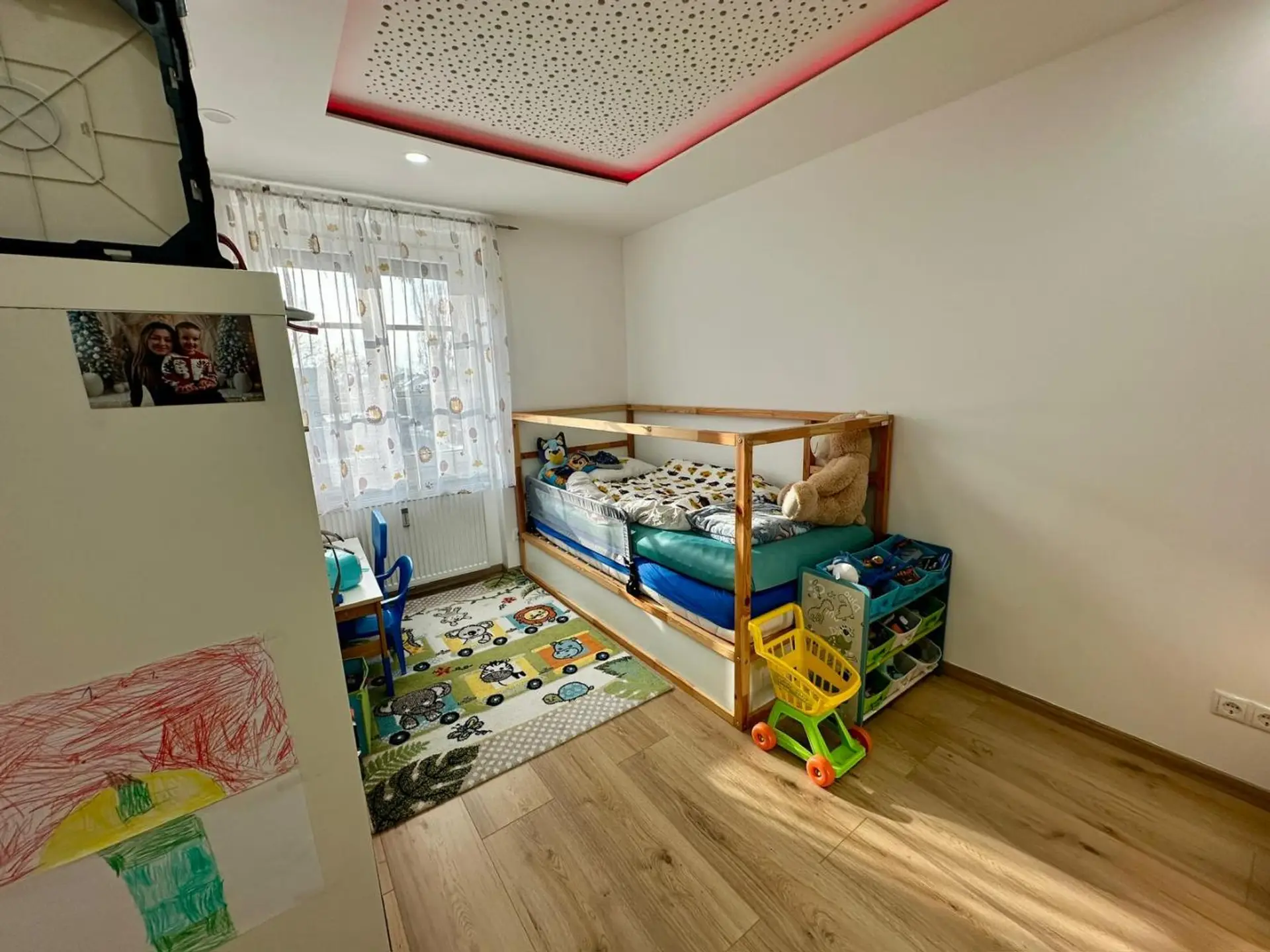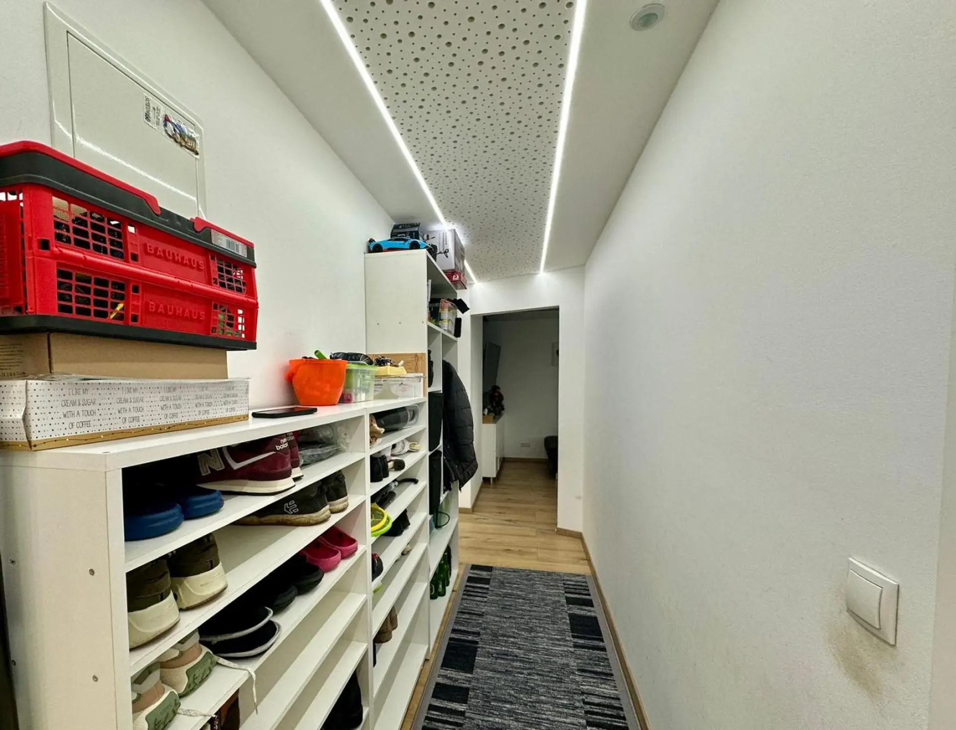 16 m² Keller ausgebaut, Gartenanteil allgemein, Laminat und Fliesen, Holzfenster mit elektr. Rollo und Insektenschutz,