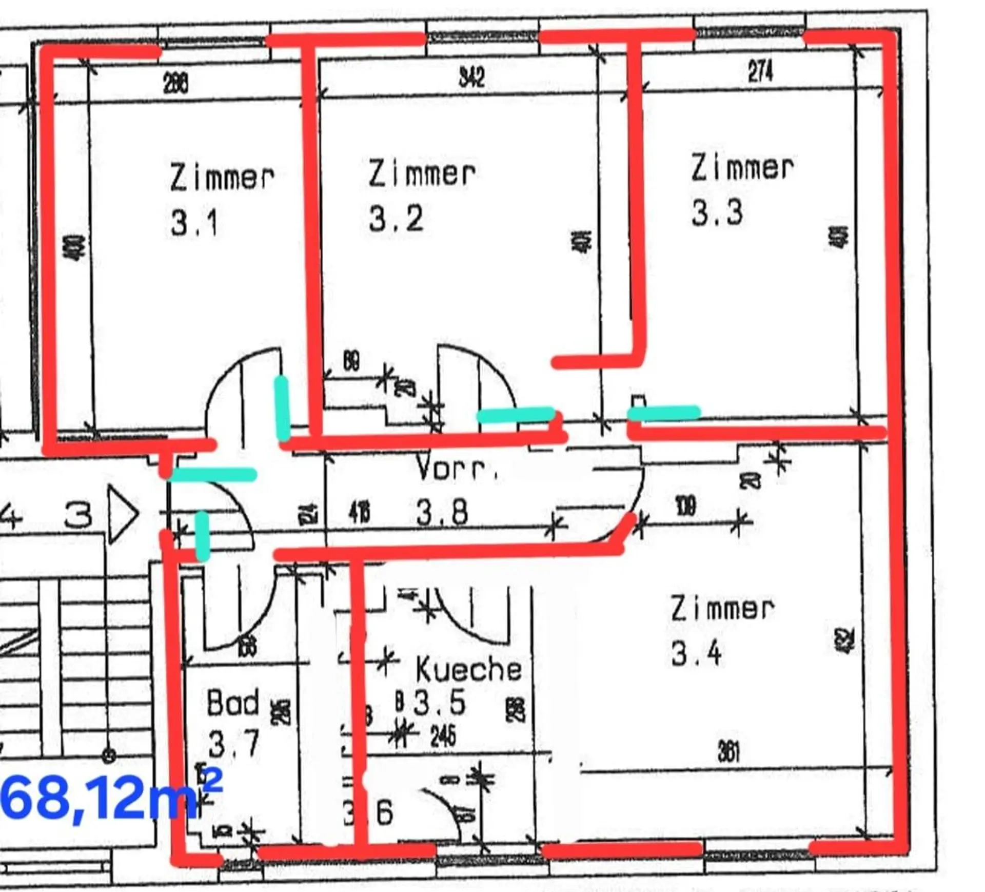 Objekt Nr. 102, Top-sanierte Wohnung in ruhiger Lage in Graz zum Vermieten, oder als Wohngemeinschaft für Stundenten, oder für Familien die 3 Schlafzimmer brauchen, Wohnfläche ca. 68 m², 1. Stock, Bad mit Dusche und WC, 3 Zimmer, Küche-Wohn-Esszimmer,
