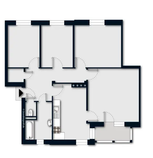 * Raumaufteilung: Vorraum, Küche, Wohnzimmer, 3 Schlafzimmer, Bad, WC, Abstellraum, Loggia