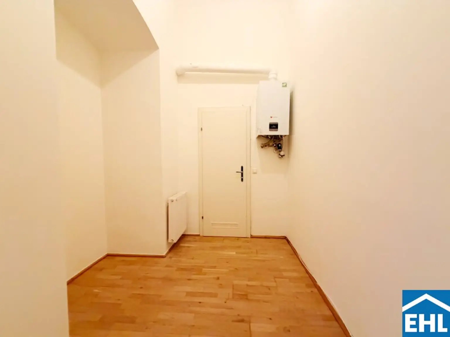 Die Wohnung befindet sich im Erdgeschoss und verfügt über drei Schlafzimmer, eine separate Küche mit Fenster, ein Badezimmer mit Badewanne und Waschmaschinenanschluss, ein separates WC, sowie einen Abstellraum und einen Vorraum.