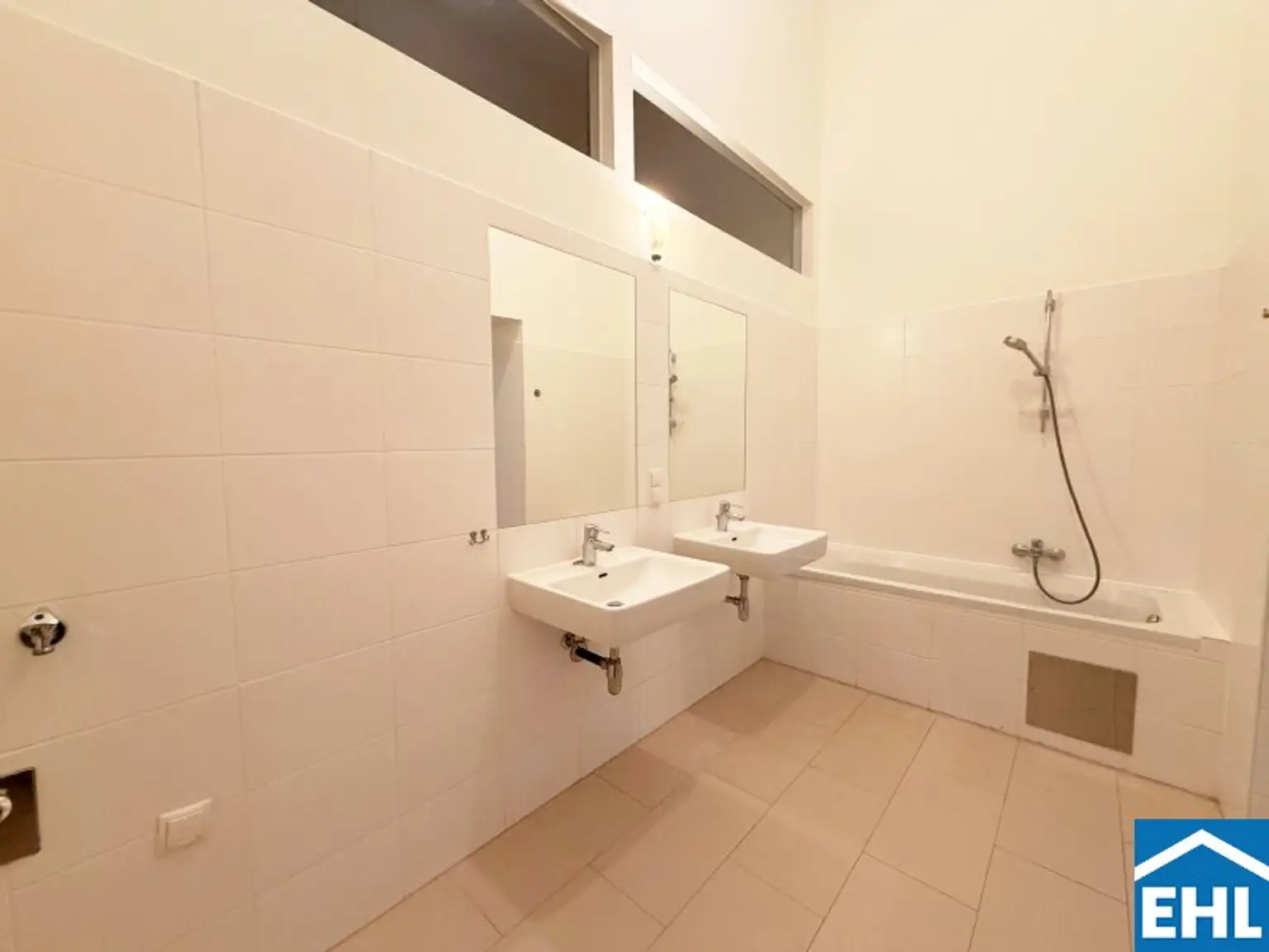 * Badezimmer mit Dusche, WC und Waschmaschinenanschluss