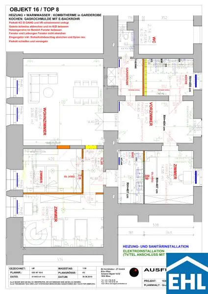 * Wohnräume: Parkettboden, Sanitärräume: Fliesen