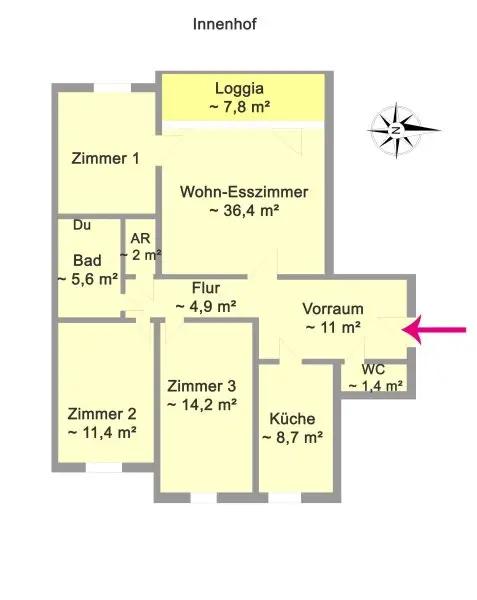 Die über 95 m² große 4-Zimmerwohnung unterteilt sich in den zentralen Vorraum, ein separates WC, Bad mit Doppelwaschbecken und Dusche und einen Abstellraum. Vom Wohnzimmer führt eine Terrassentür auf die westseitige Loggia mit wunderschönem Blick in den begrünten Innenhof. Neben dem Wohnzimmer befindet sich ein Zimmer, das sich gut als Büro eignen würde. Nordseitig, mit unverbaubarem Blick auf den Penzinger Friedhof und den Matzner-Park liegen eine Einbauküche sowie zwei Zimmer.