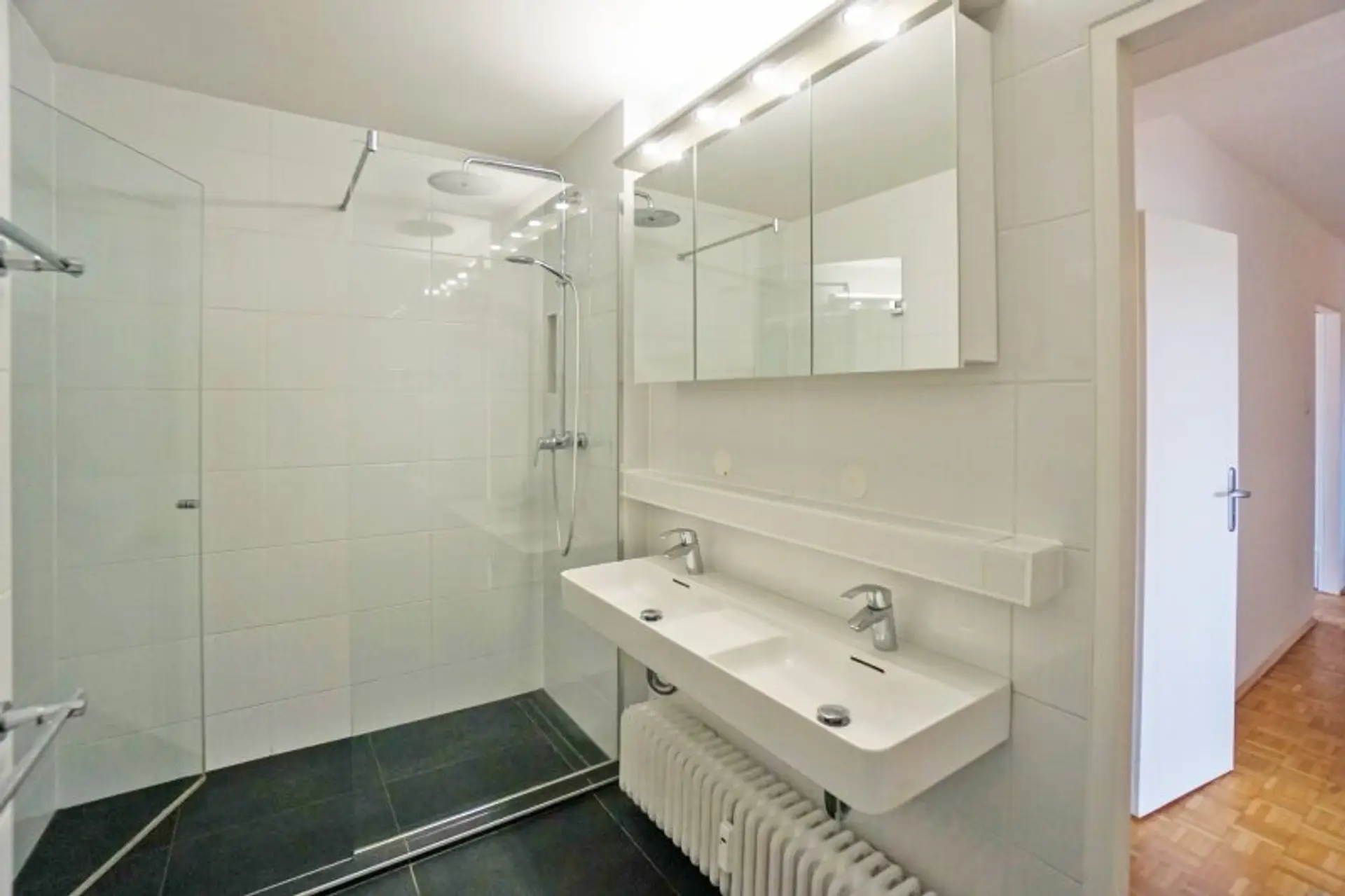 Die Beheizung der Wohnung erfolgt mittels einer Gas-Zentralheizung. In sämtlichen Wohnräumen sind Parkettböden und in der Küche Vinylboden verlegt, die Nassräume sind verfliest. Zur Wohnung gehört auch ein etwa drei m² großes Kellerabteil. Allen Bewohnern des Hauses stehen ein Fahrrad- und Kinderwagenabstellraum, der sehr gepflegte Allgemeingarten mit Holzbänken und -tischen, ein attraktiver Hobby- Gemeinschaftsraum und ein großzügiger Spielplatz zur Verfügung. Eine allgemeine Waschküche liegt nur einige Stockwerke tiefer in Haus 1.