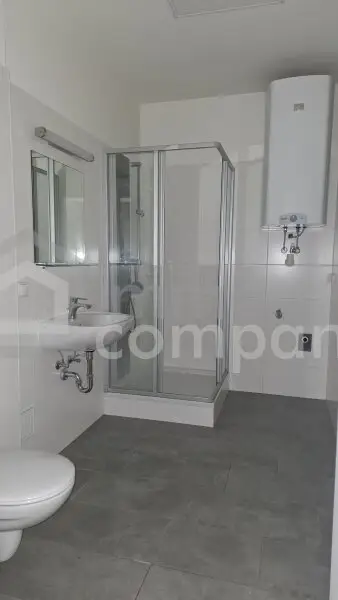 Das Badezimmer ist mit Dusche, WC, Waschbecken, einem Waschmaschinenanschluss sowie einem Warmwasserboiler ausgestattet.