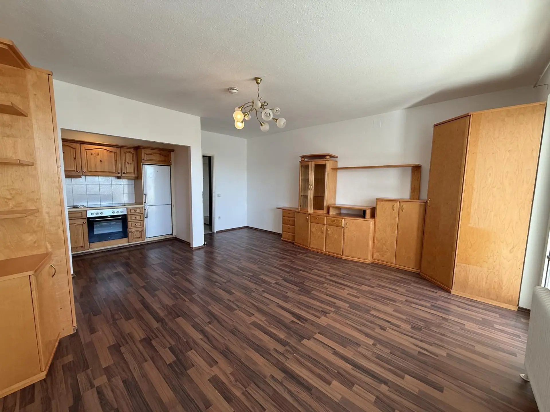 Die Wohnung ist Teil-Möbliert mit Küche, Schränken, Kommoden und einem Schrankbett.