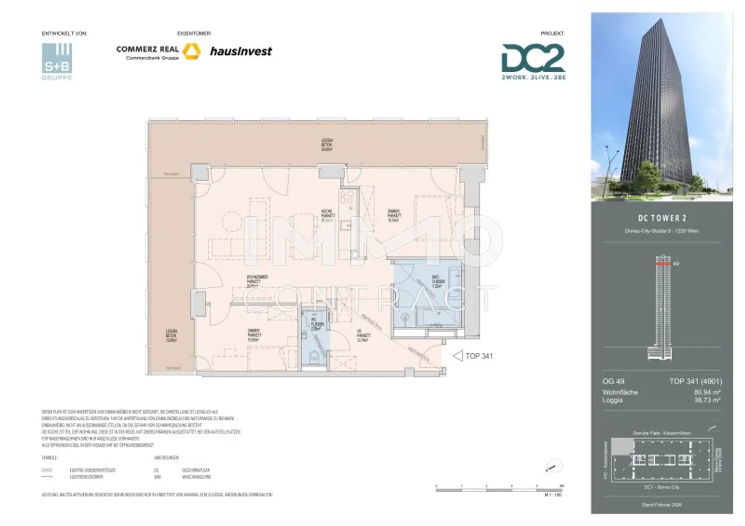 * Mietwohnungen: 314 (ab dem 32. Obergeschoß)