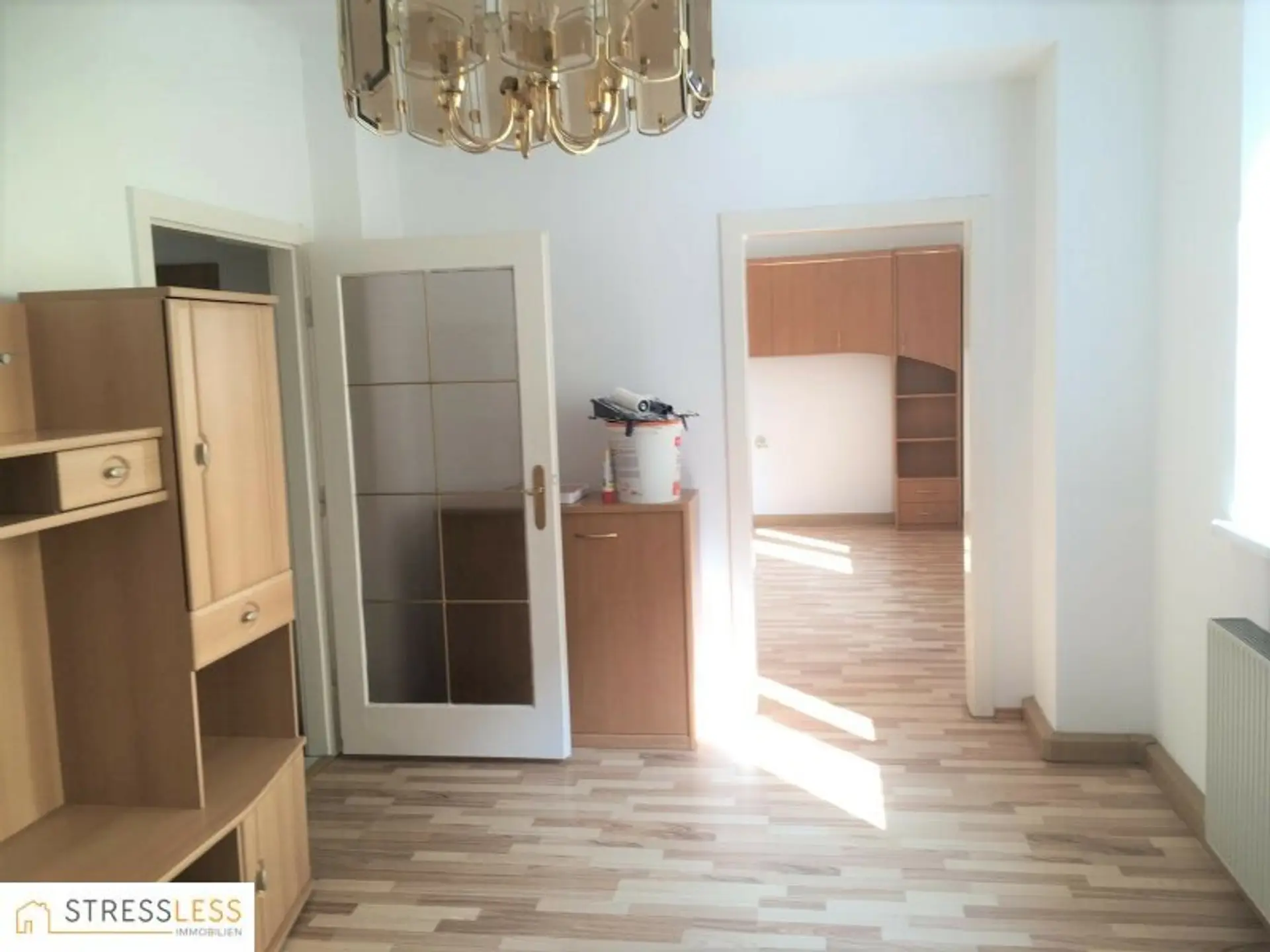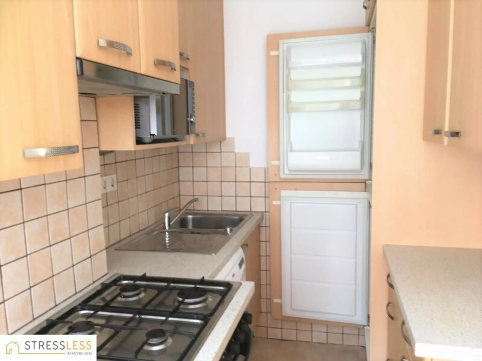 Über ein zentrales Vorzimmer betritt man das Wohnzimmer und die daneben liegende, neue und voll ausgestattete Küche.
