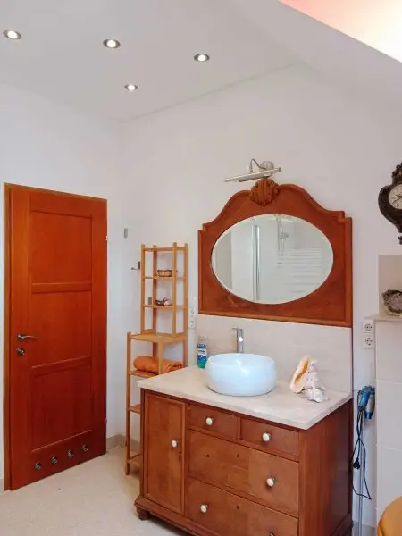 Das Haus verfügt über zwei Badezimmer, eines davon mit integriertem WC, sowie ein separates WC, was den Alltag besonders komfortabel macht.
