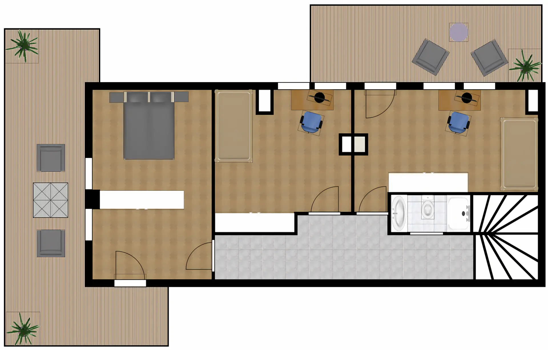 + air condition on upper floor (could be layed throughout the whole apartment)