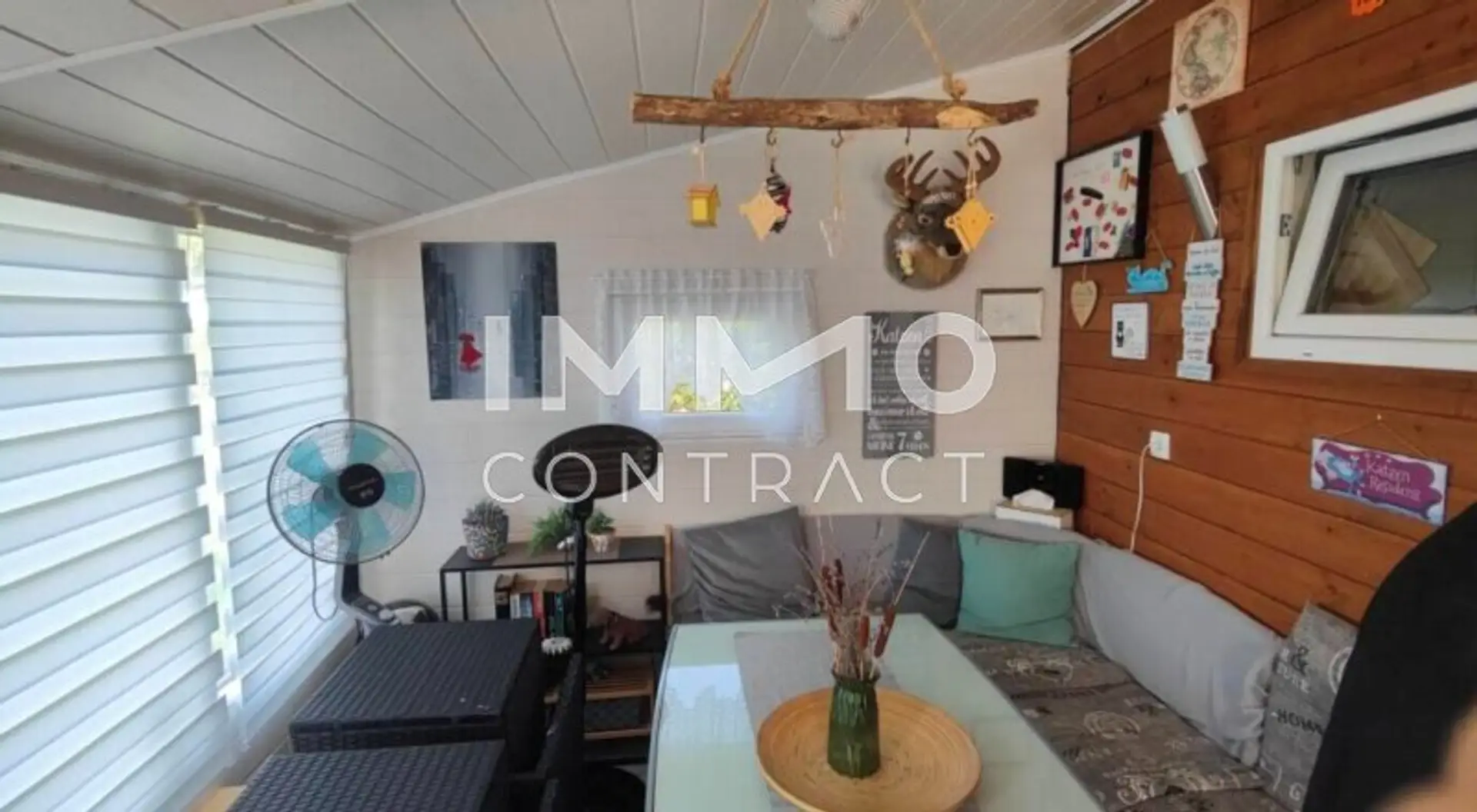 Das Gebäude besteht aus einem vollständig eingehausten Mobilheim sowie einem in Leichtbauweise errichteten Anbau (Sitzplatz). Die Nutzfläche beträgt insgesamt ca. 34 m² (Zimmer ca. 23,99 m², Vorraum ca. 10 m²). Innen präsentiert sich das Objekt modernisiert und sofort nutzbar. Es ist für Freizeitzwecke konzipiert und nicht zur ganzjährigen Bewohnung geeignet (nicht frostsicher, Wintersperre).