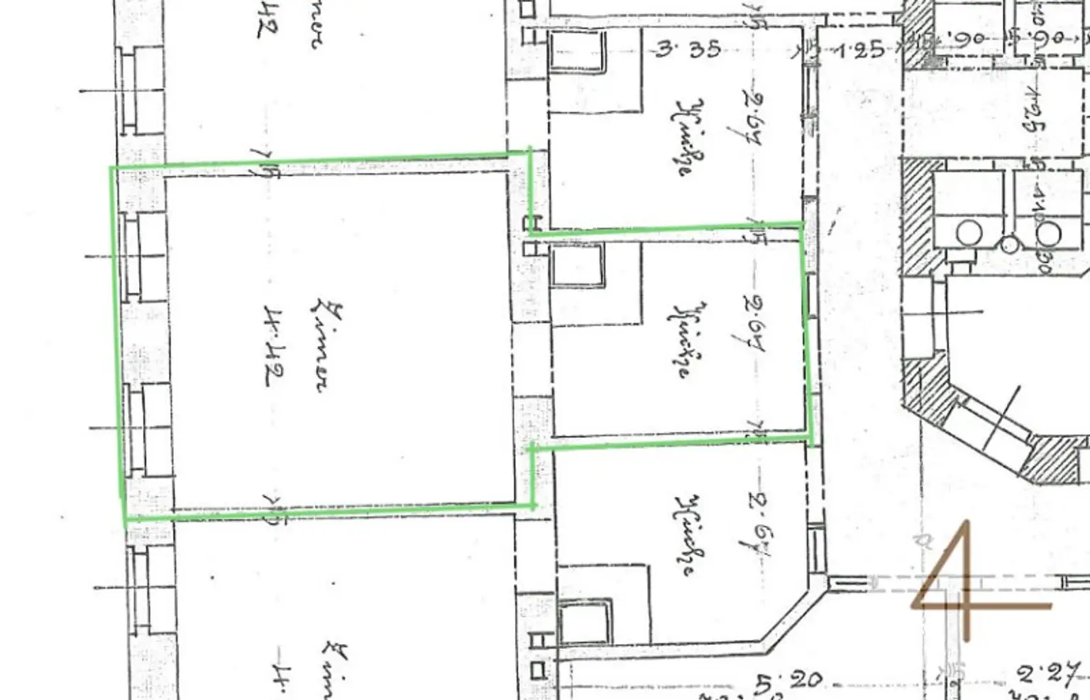 Die Wohnung befindet sich im 1. Stock eines sanierungsbedürftigen Altbaus, ideal für Singles oder Paare