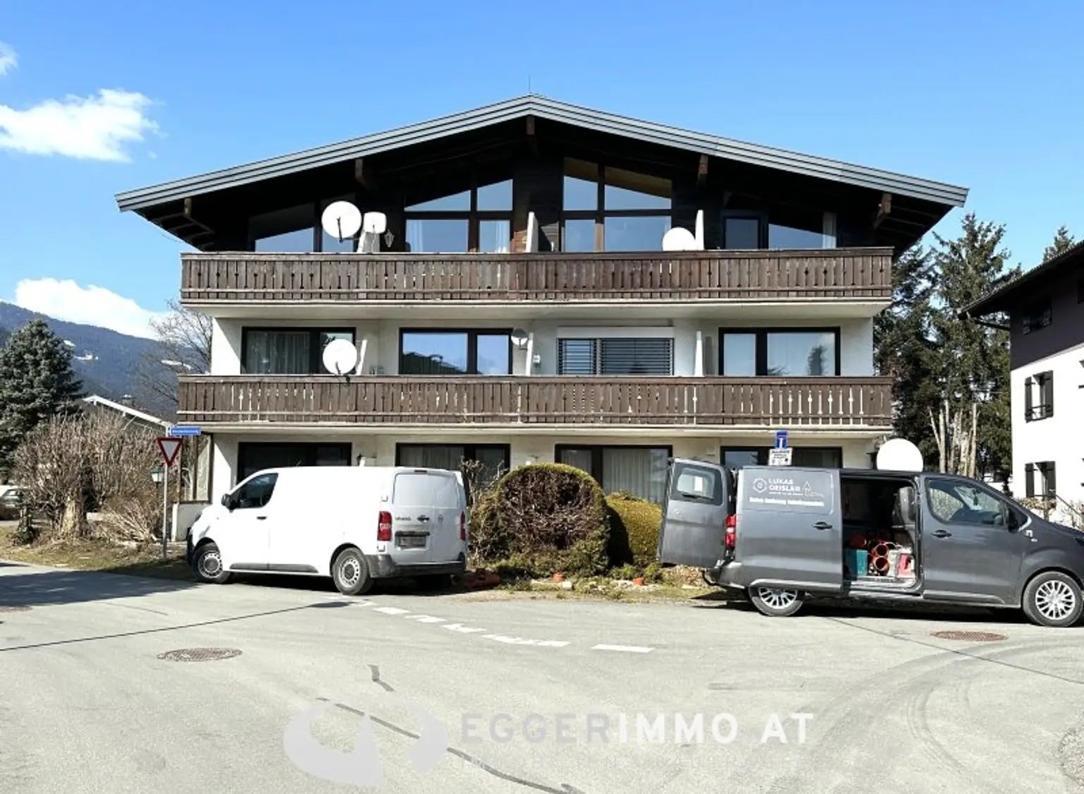 The building includes a ski storage room, and the apartment comes with a separately lockable garage which provides access to the stairwell.