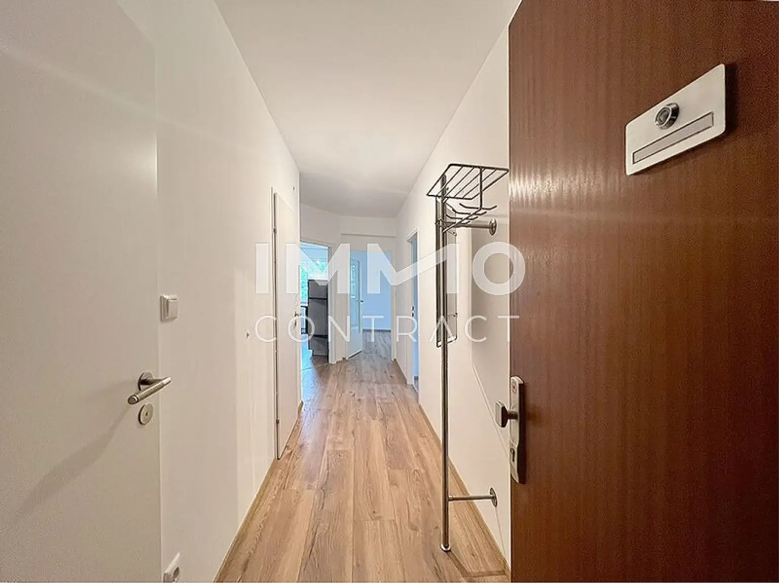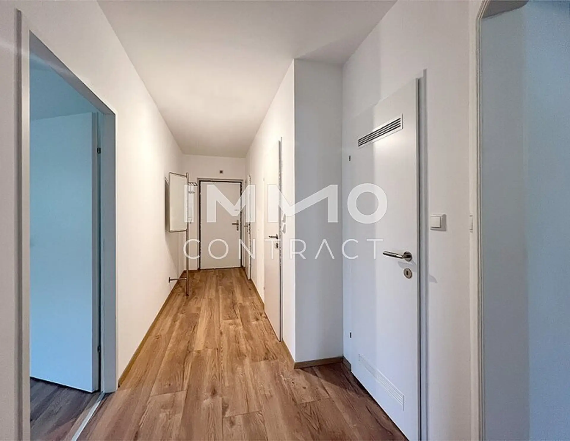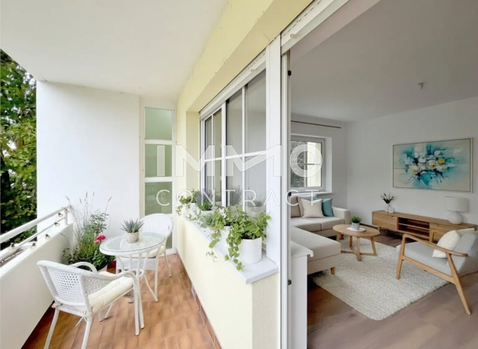Reichlich Stauraum findet man in der angrenzenden Garderobe. Duschbad und ExtraWC, sind mit heller Sanitär ausgestattet. Die geräumige, zentrale Diele empfängt mit hellem Holzboden, einer Spiegelgarderobe im Eingangsbereich und führt zum Schlafzimmer- nach Süden und zum hellen Wohnraum - nach Osten, mit Ausgang auf die ca. 8qm große Loggia.