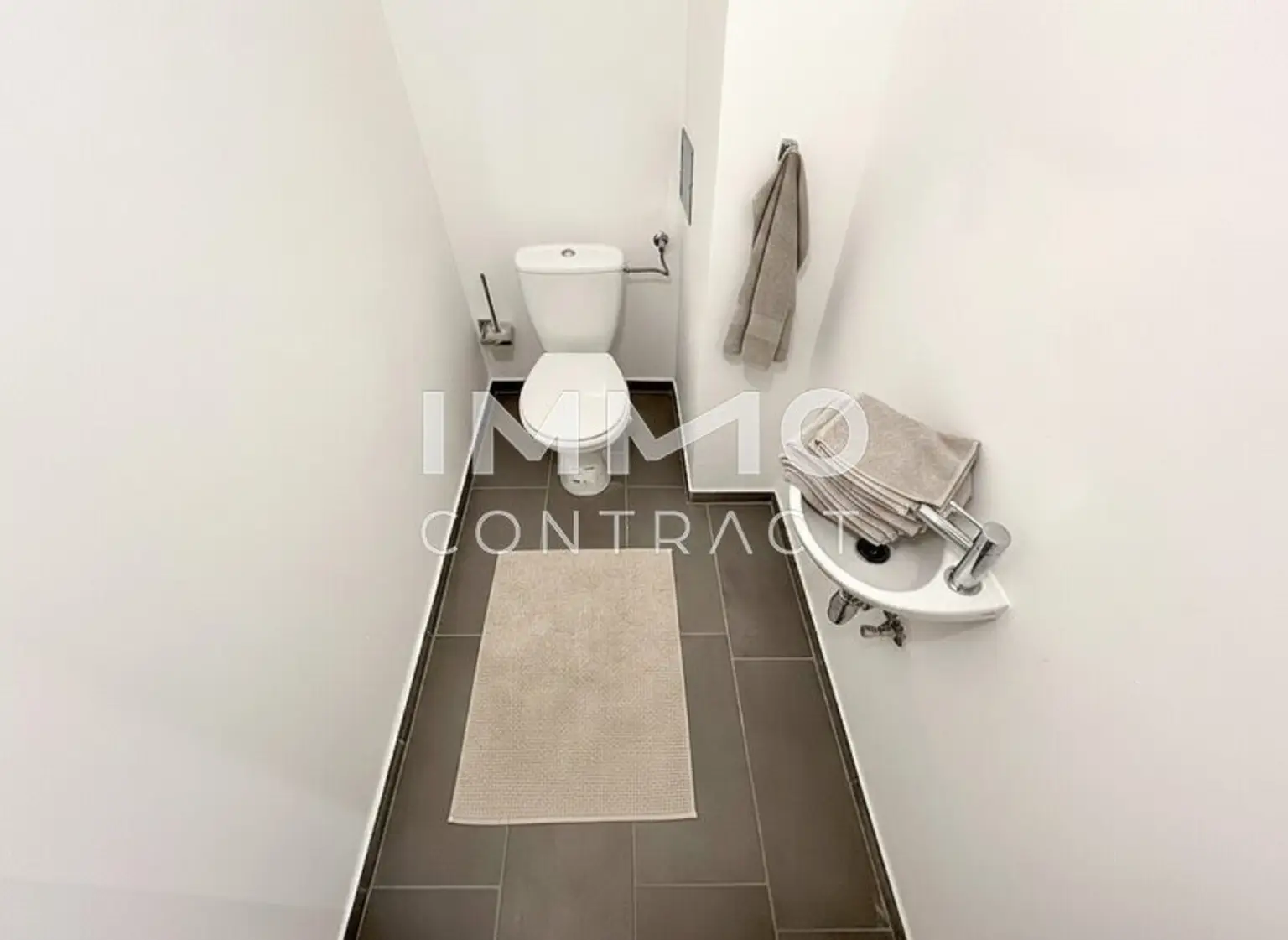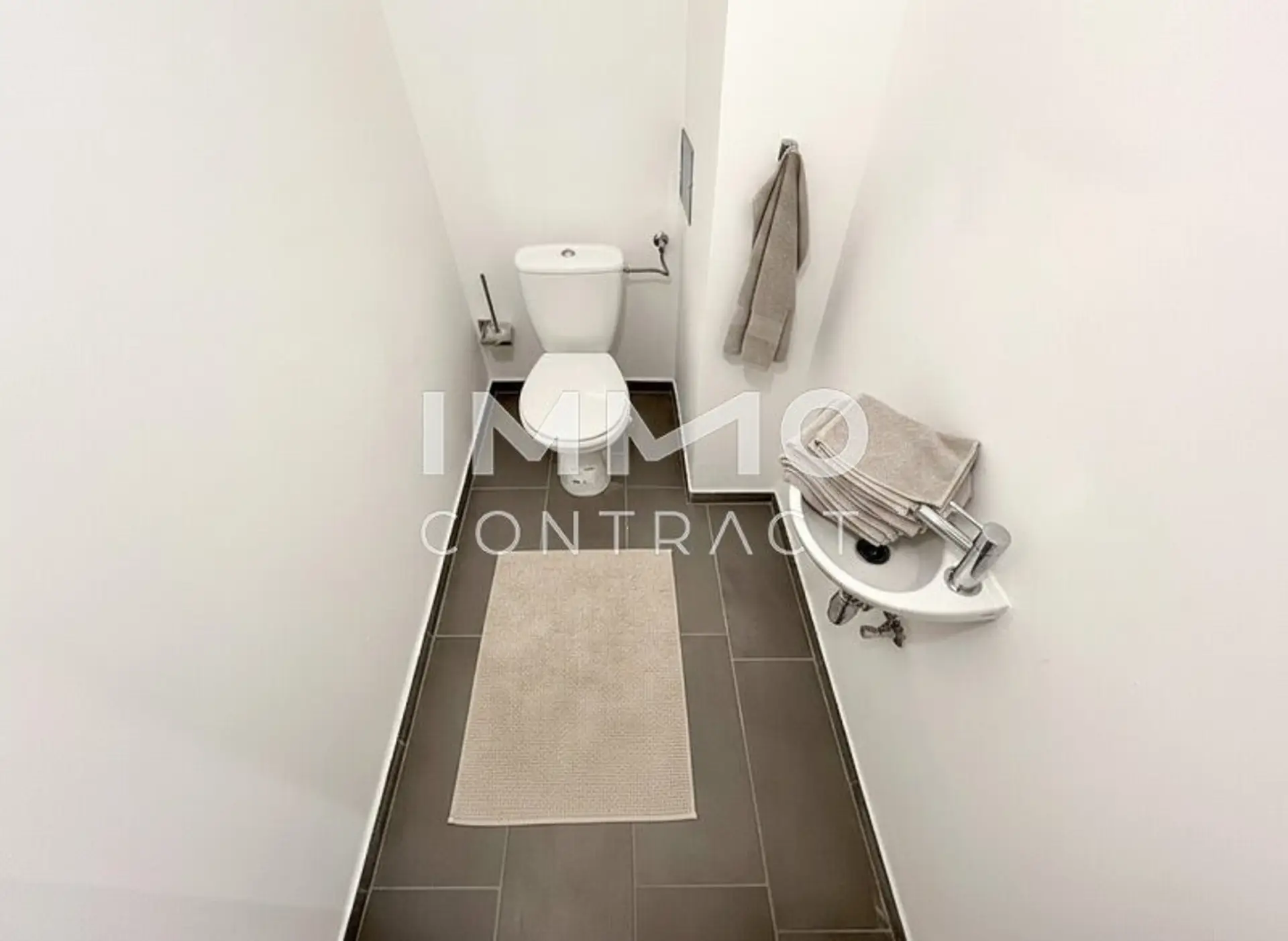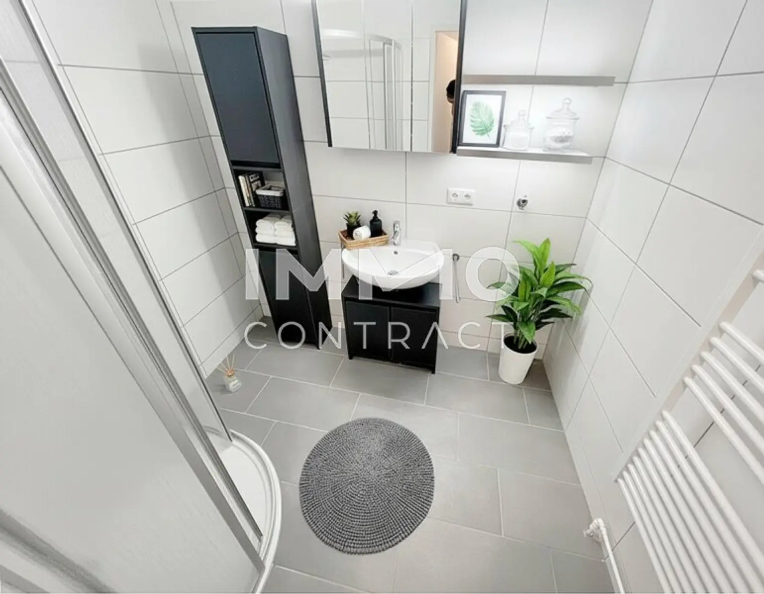 Reichlich Stauraum findet man in der angrenzenden Garderobe. Duschbad und ExtraWC, sind mit heller Sanitär ausgestattet. Die geräumige, zentrale Diele empfängt mit hellem Holzboden, einer Spiegelgarderobe im Eingangsbereich und führt zum Schlafzimmer- nach Süden und zum hellen Wohnraum - nach Osten, mit Ausgang auf die ca. 8qm große Loggia.
