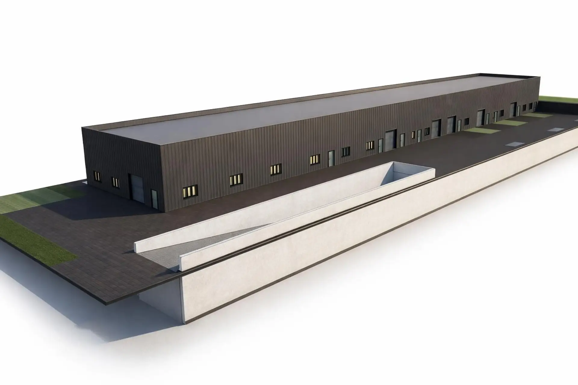 Es werden dort Hallen gebaut und im 1. OG Büros. Wir suchen einen Kunden der 1200 bis 2000 m2 Büro oder andere Verwendung im 1. OG sucht.