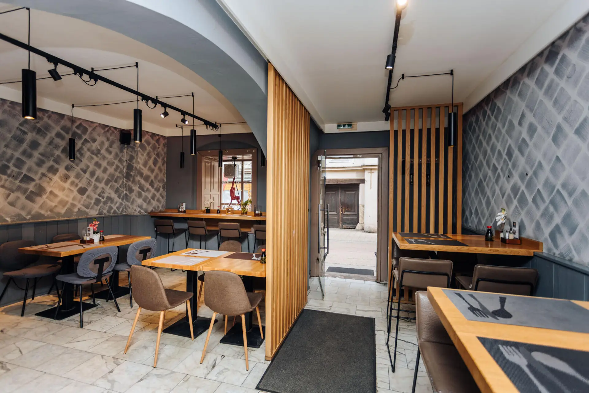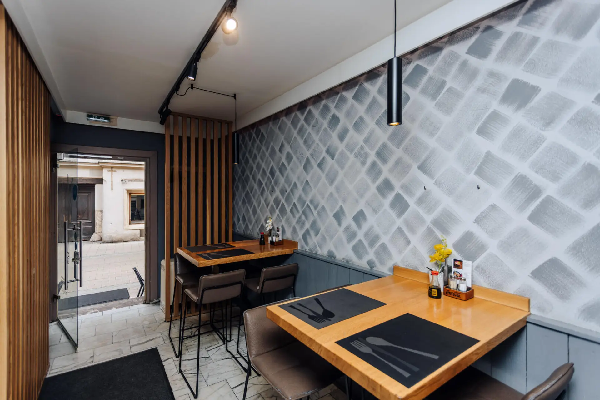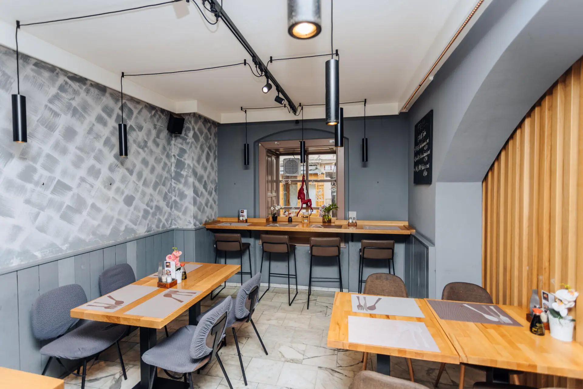Nähe Hauptplatz – ca. 65 m² mit 24 Sitzplätzen innen + 24 Sitzplätzen außen. Perfekt geeignet für Sushi, Nudelbar, Café, Teestube oder kleines Atelier/Art-Gallery.