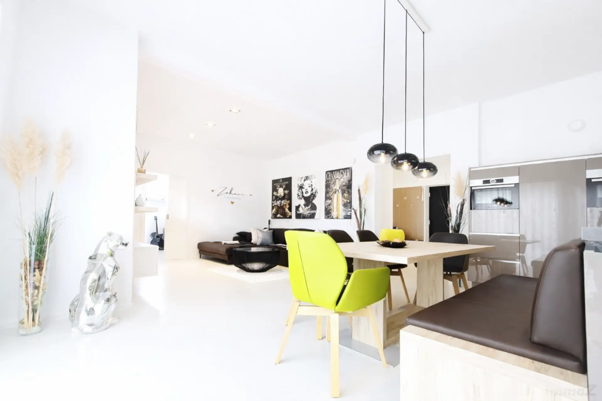 Vom offenen Ess-Wohnraum mit einer hochwertigen Neubauer-Tischlerküche gelangt man auf die großzügige Sonnenterrasse.