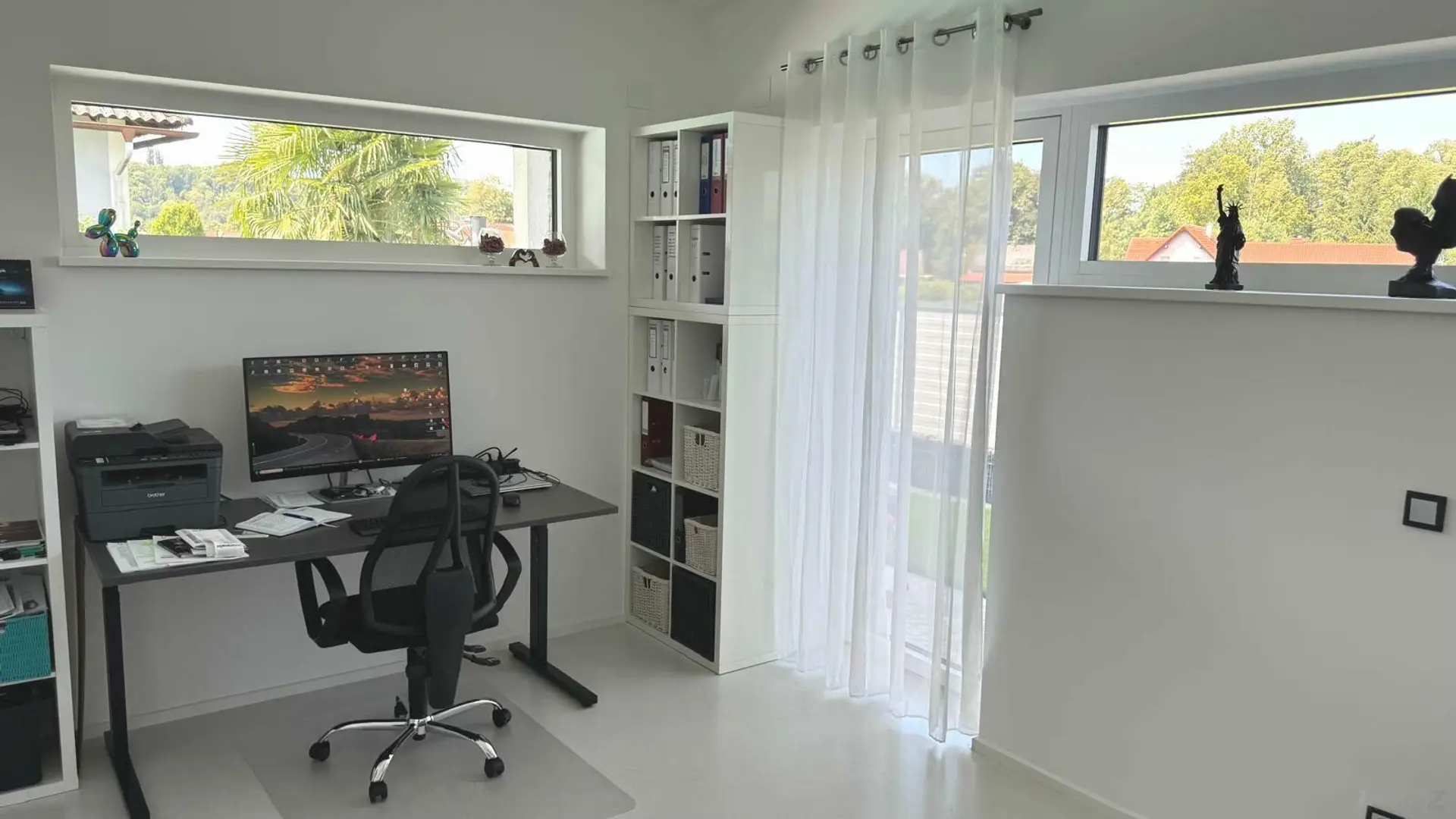 Das Haus bietet neben dem Privat-Bereich mit Schlafzimmer, Schrankraum und Tageslichtbadezimmer (Dusche und Badewanne) ein weiteres Schlafzimmer bzw. Büro.