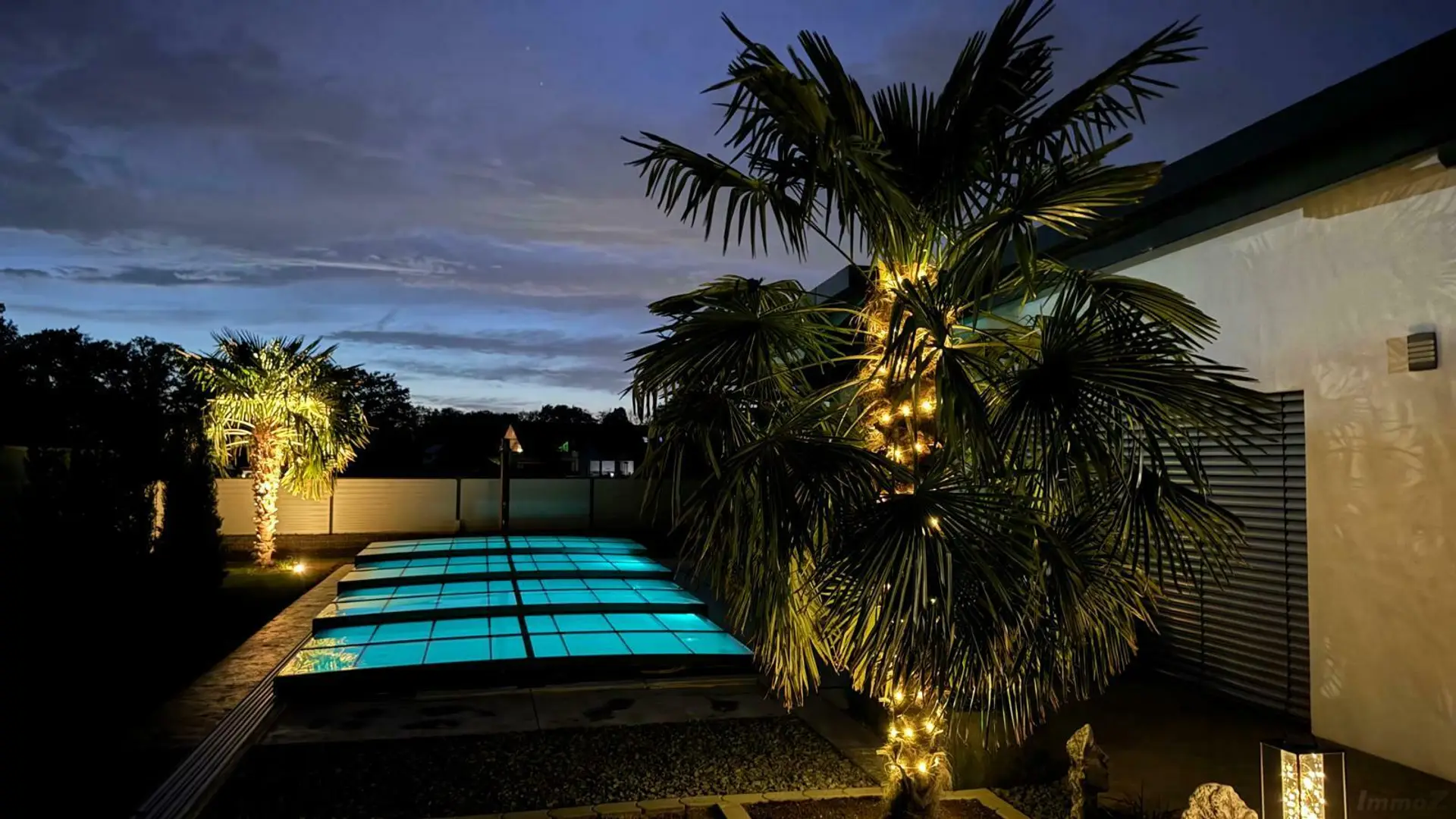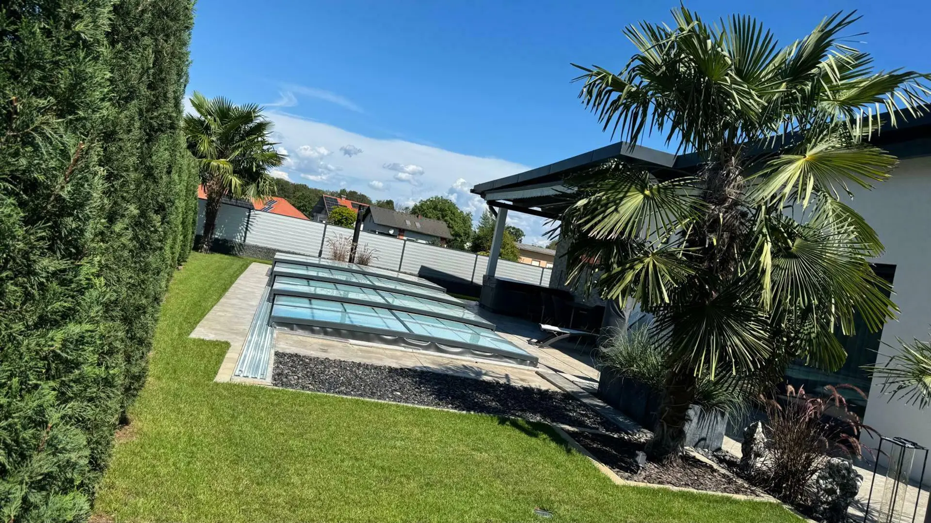 Barrierefreies Wohnen, Wohnraumbelüftung, Fußbodenheizung (Luftwärempumpe mit WW-Speicher), Solaranlage, Entkalkungsanlage, Salzwasserpool, Whirlpool, Rasenroboter, Rasenbewässerung, West-Terrasse mit Markise, App-gesteuerte Alarmanlage mit Glasbruchmelder und Zaunbeleuchtung, elektrische/App-gesteuerte Außenrollläden/Raffstore, 2 überdachte KFZ-Abstellplätze, Abstellnische/Abszellraum, Gästeparkplätze.